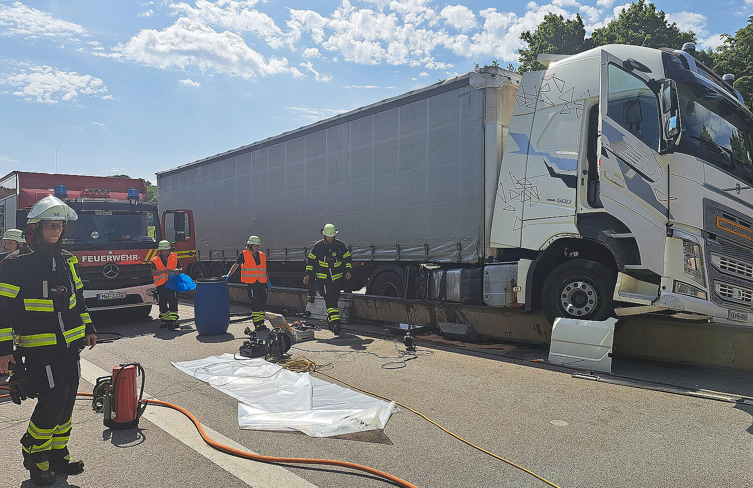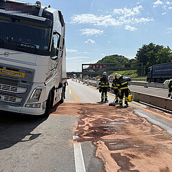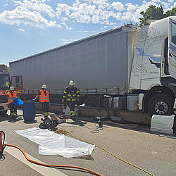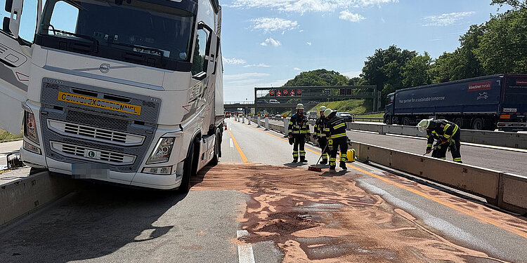 Jede Menge ausgelaufener Dieselkraftstoff hat die Einsatzkräfte der Feuerwehr München am Montagvormittag beschäftigt. Erst nach vier Stunden konnten die letzten Kräfte die Einsatzstelle verlassen.