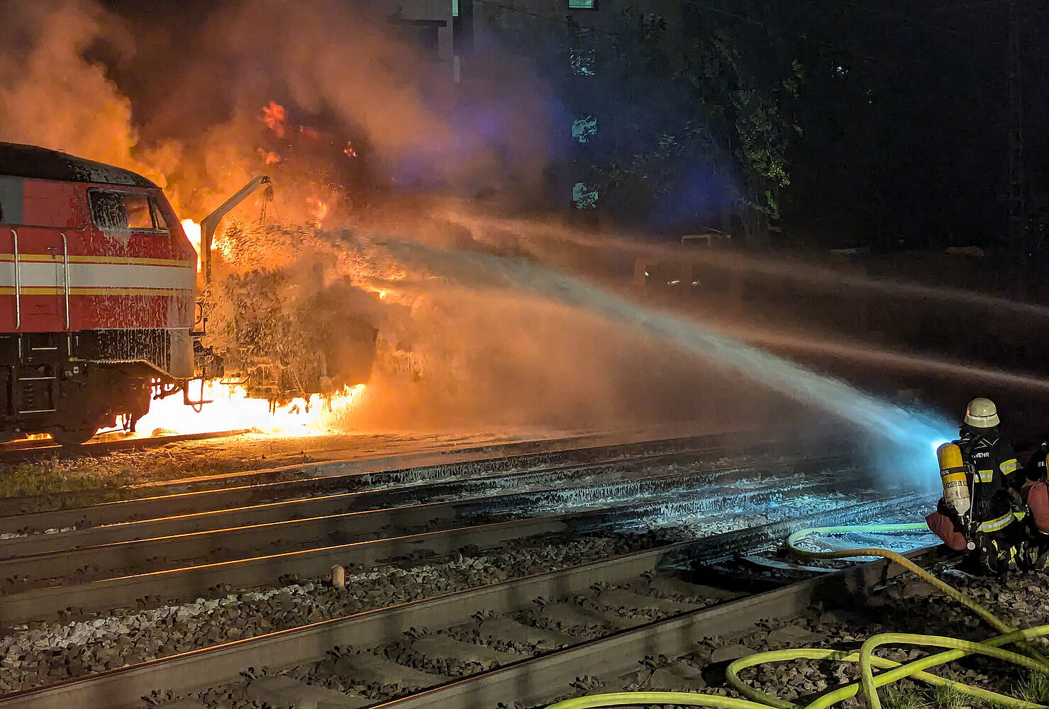 Am späten Samstagabend ist die Feuerwehr München zu einem brennenden Zug alarmiert worden. Der Bahnverkehr wurde dabei stark beeinträchtigt.