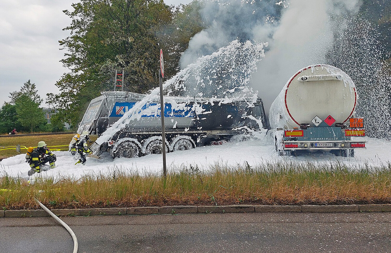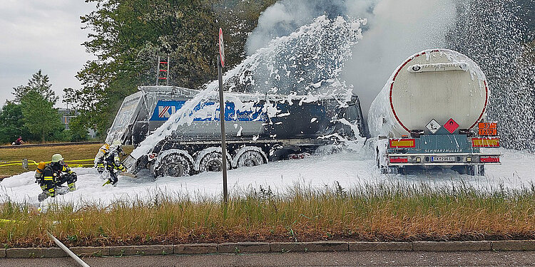 Beim Brand von zwei Lastwagen ist heute eine Person ums Leben gekommen.