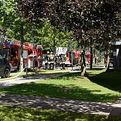 Die FF München war mit den Abteilungen Großhadern und Sendling über fünf Stunden bei Sommerhitze im Einsatz. Neben den Löscharbeiten öffneten die Kameradinnen und Kameraden die Dachhaut und deckten danach das offene Dach mit einer Plane ab. Die Abteilung Forstenried besetzte während des Einsatzes die verwaiste Feuerwache 2 in Sendling.