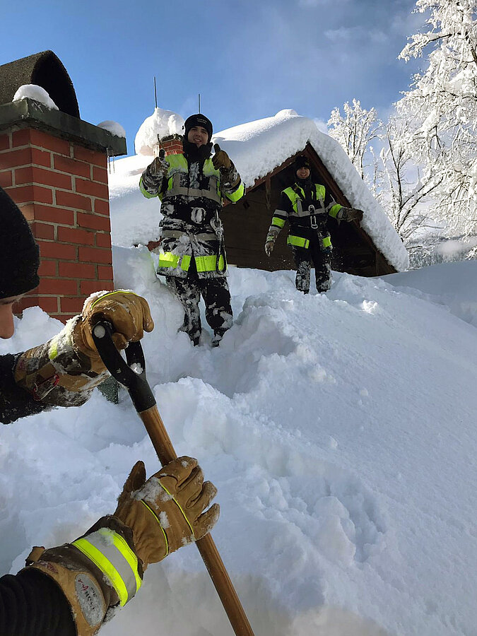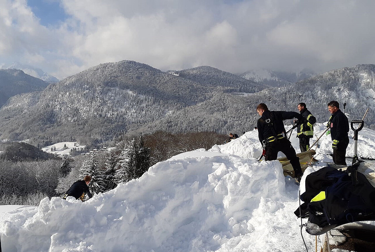 Die Feuerwehr München kämpft gegen die Schneemassen auf Dächern und Baumwipfeln im Berchtesgadener Land.