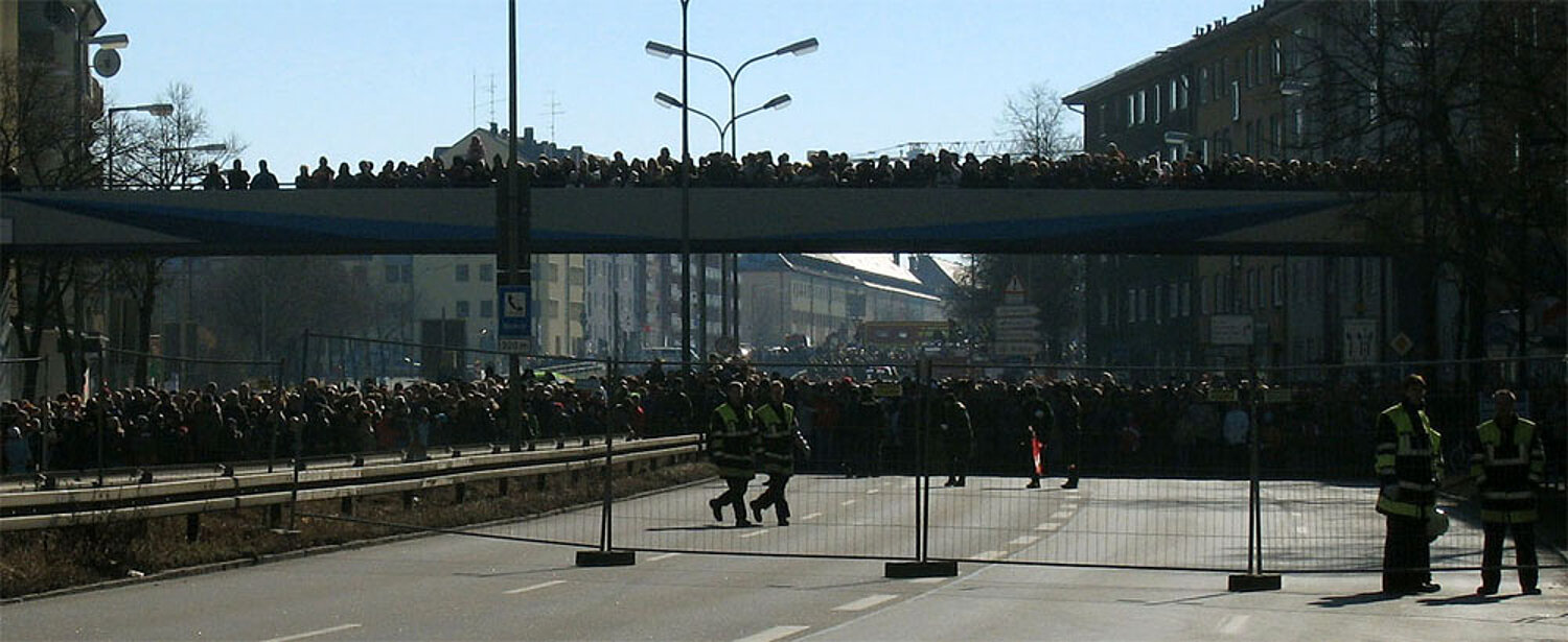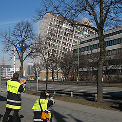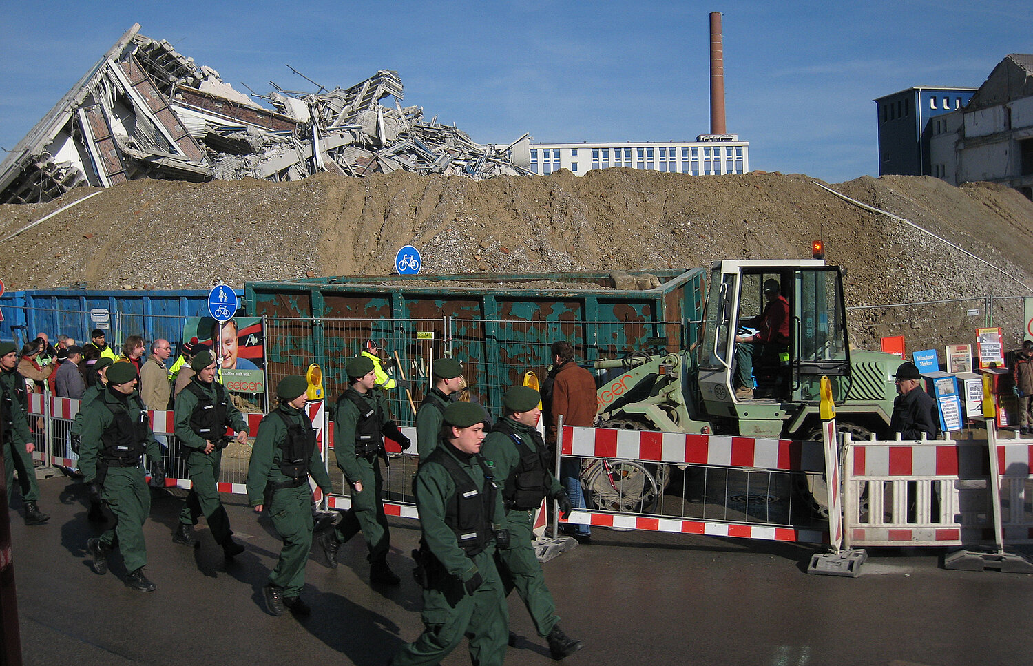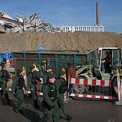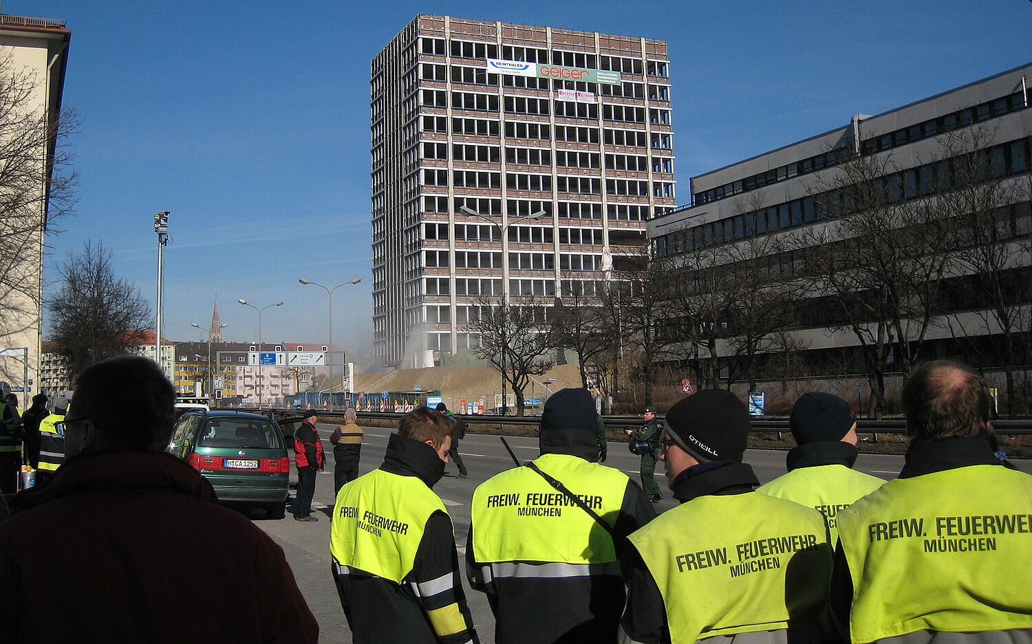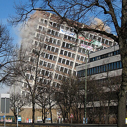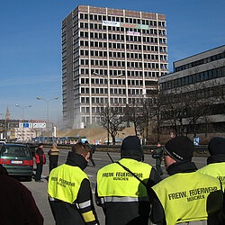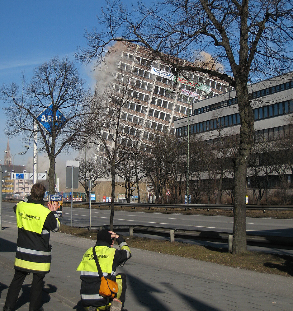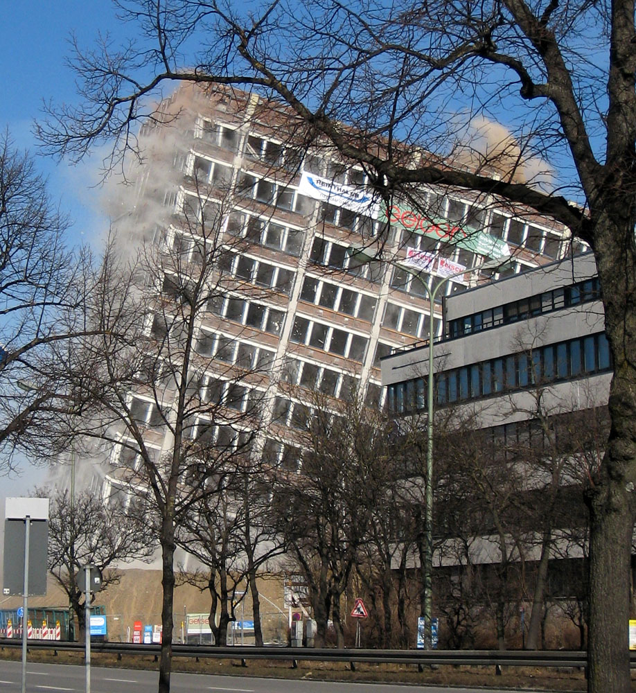 Am Mittag des 17. Februar wurde die seit langer Zeit geplante Sprengung des 51 Meter hohen Agfa-Gebäudes durchgeführt.