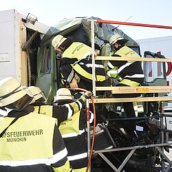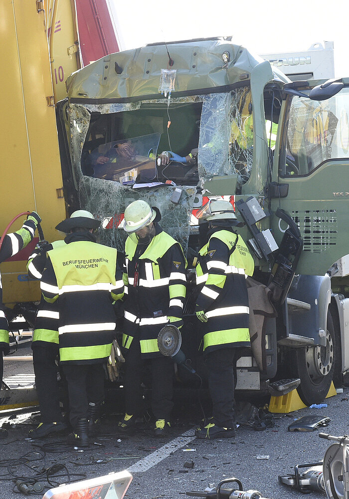 Am Nachmittag des 20. März ist es auf der A99 nach der Ausfahrt Ludwigsfeld in Fahrtrichtung Autobahndreieck Feldmoching zu einem Auffahrunfall mit drei Lastkraftwagen gekommen. Ein Lkw-Fahrer wurde dabei schwer verletzt.