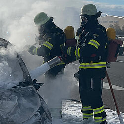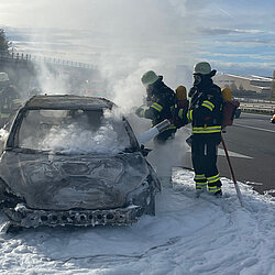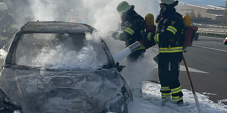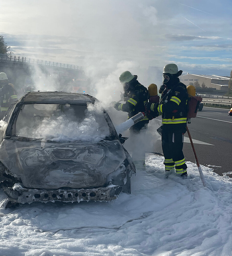 Ein Pkw ist bei einem Brand auf der Autobahn A96 Fahrtrichtung München, Höhe der Ausfahrt Germering komplett zerstört worden. Verletzt wurde glücklicherweise niemand.