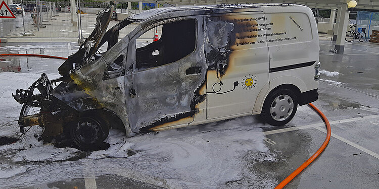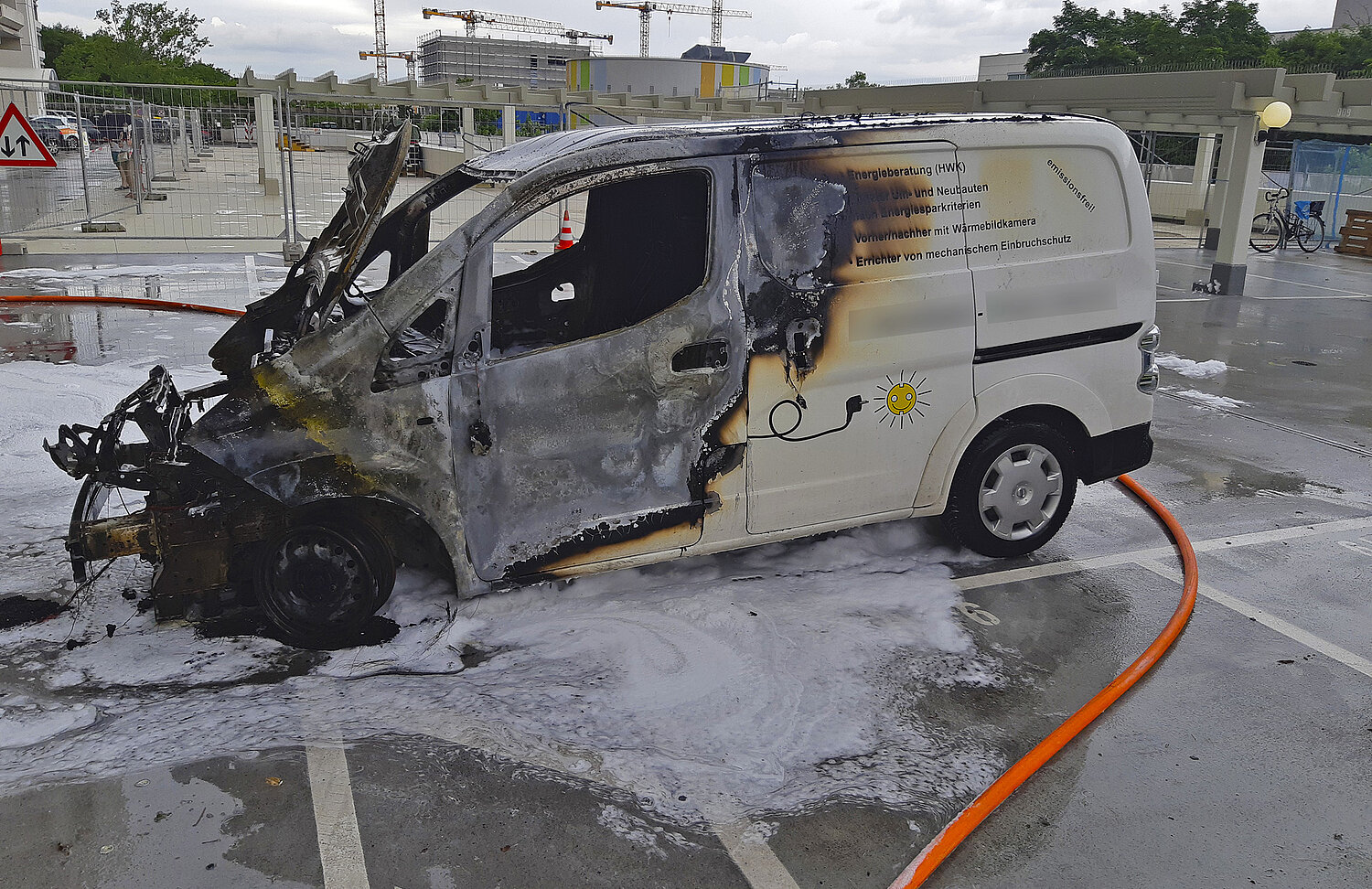 Ein Elektrofahrzeug und ein weiterer Pkw gerieten aus unbekannter Ursache im Freien in Brand. Beide Fahrzeuge waren auf den Stellplätzen vor den Hochhäusern geparkt. Dadurch zog schwarzer Rauch am Hochhaus hinauf. Mehrere Anrufe gingen bei der Integrierten Leitstelle über den Brand ein.