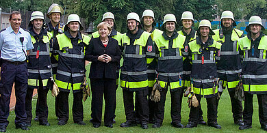 | Die Flughelferstaffel der Freiwilligen Feuerwehr München, unterstützt von der Abteilung Freimann, sicherte den behelfsmäßigen Landeplatz bei Landung und Start des Polizeihubschraubers anlässlich des Besuchs der Bundeskanzlerin Merkel am 31. Juli 2016…