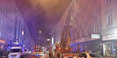 | Heute Mittag hat sich im Münchner Stadtteil Trudering ein Brand in einem dreistöckigen Wohn- und Geschäftshaus ereignet. Im Küchenbereich eines Büros im ersten Obergeschoss brach aus ungeklärter Ursache ein Feuer aus.