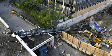 | Auf einer Baustelle ist am Dienstag ein 160 Tonnen schweres Bohrgerät umgestürzt. Der 56-jährige Fahrzeugführer wurde dabei leicht verletzt.