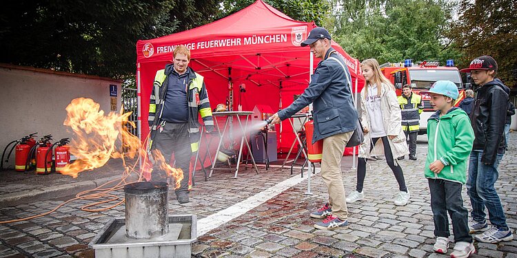 Wer schon immer einmal wissen wollte, wie man mit einem Feuerlöscher richtig umgeht, der konnte es beim Feuerwehr-Infostand beim Isarinselfest gleich selber ausprobieren.