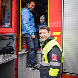 Immer ein Highlight sind die Fahrzeuge und die Feuerwehrtechnik. Und auch diesmal wollten die kleinen und großen Feuerwehrfans alles ganz genau wissen und alles selbst anschauen und anfassen. Das konnten die Interessierten am besten bei einem Rundgang um und einer Führung durch das Löschgruppenfahrzeug.