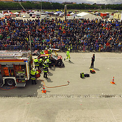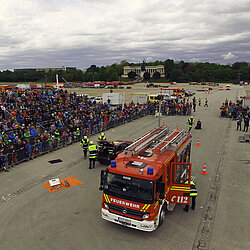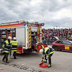 Auch die Ausstellung von circa 100 Blaulichtoldtimern sowie die Feuerwehr-Erlebniswelt für Kinder und Jugendliche wurden von den Besucherinnen und Besuchern sehr gut besucht. Gemeinsam mit MAN präsentierte das Team PRÄVENTION außerdem einige Informationen zum Thema Toter Winkel und wie man als Verkehrsteilnehmer damit umgehen sollte.