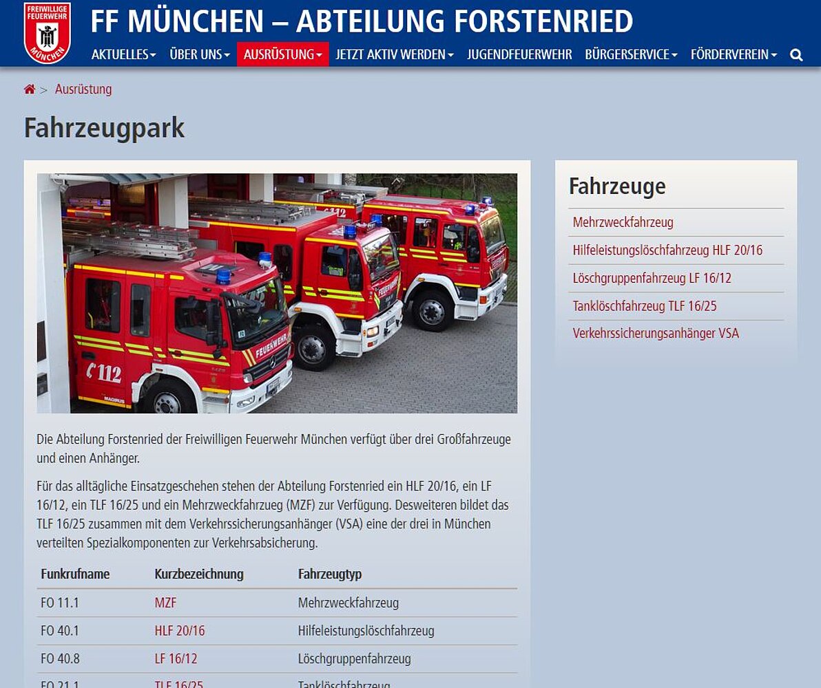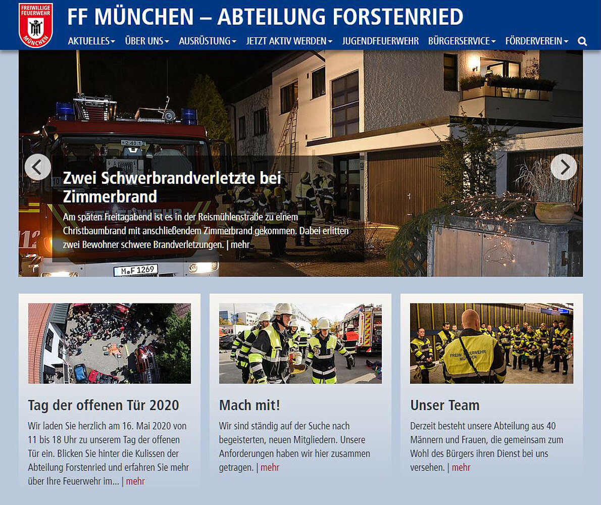 Seit Kurzem präsentiert sich die Webseite der Abteilung Forstenried mit einem neuen Aussehen, zusätzlichen Funktionen und Inhalten auf der gemeinsamen Webseitenplattform der FF München.
