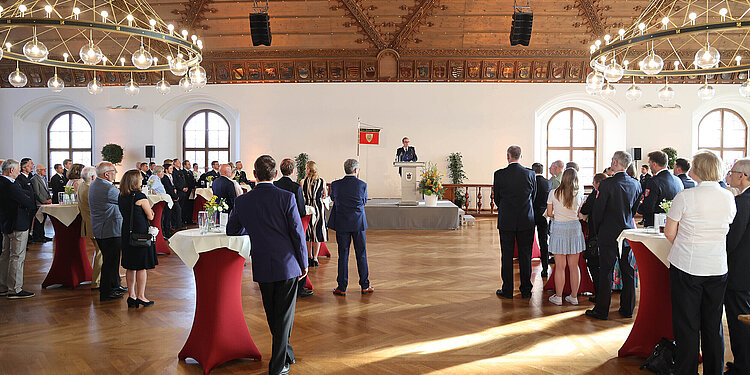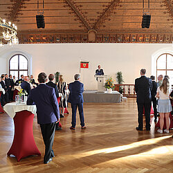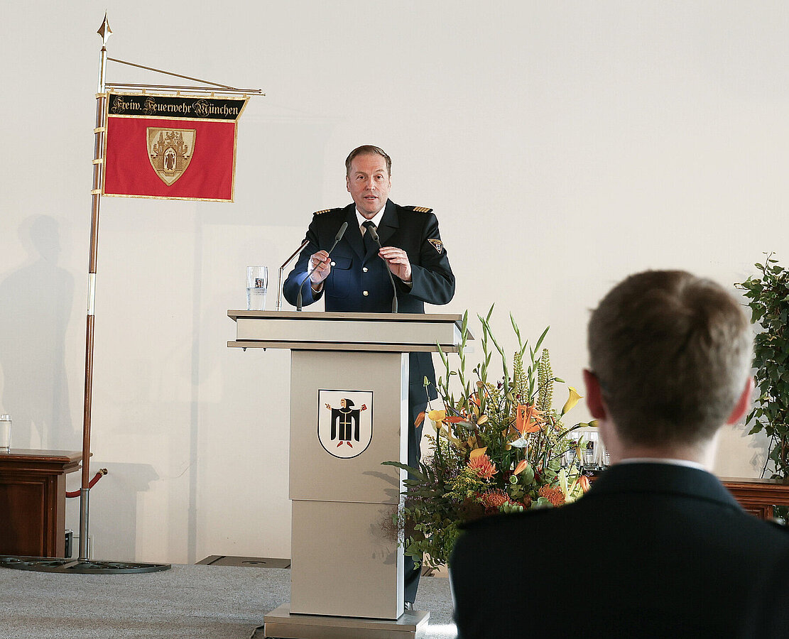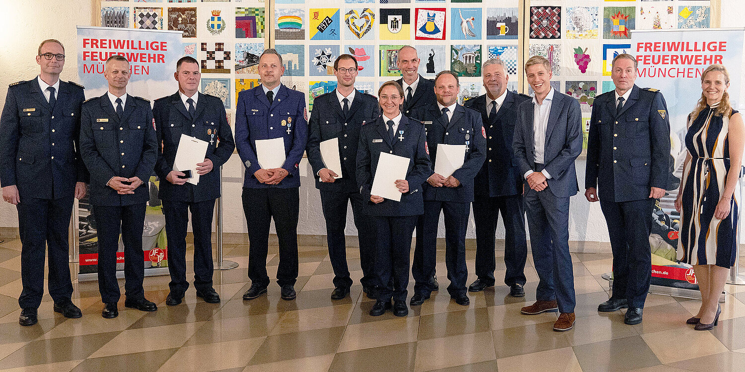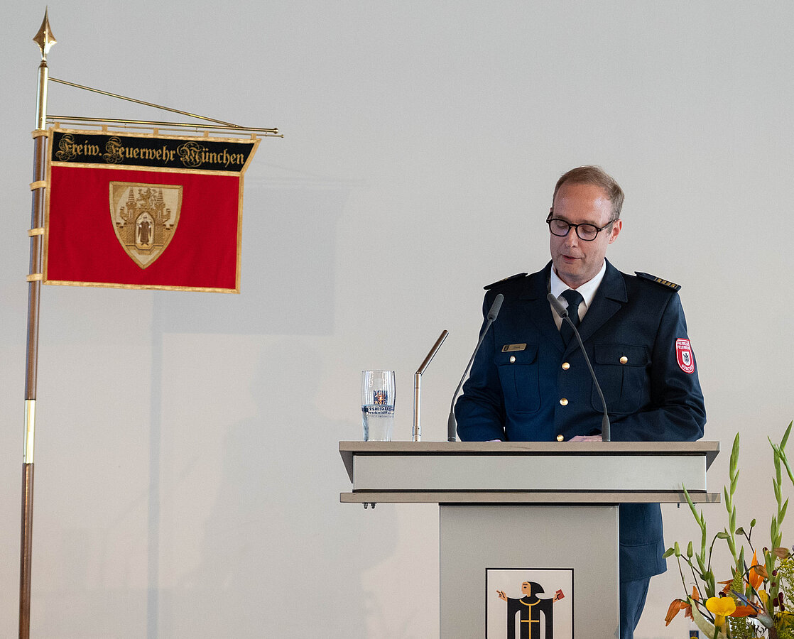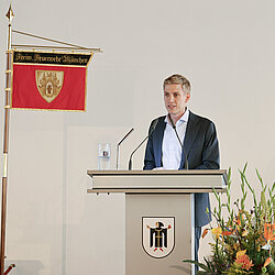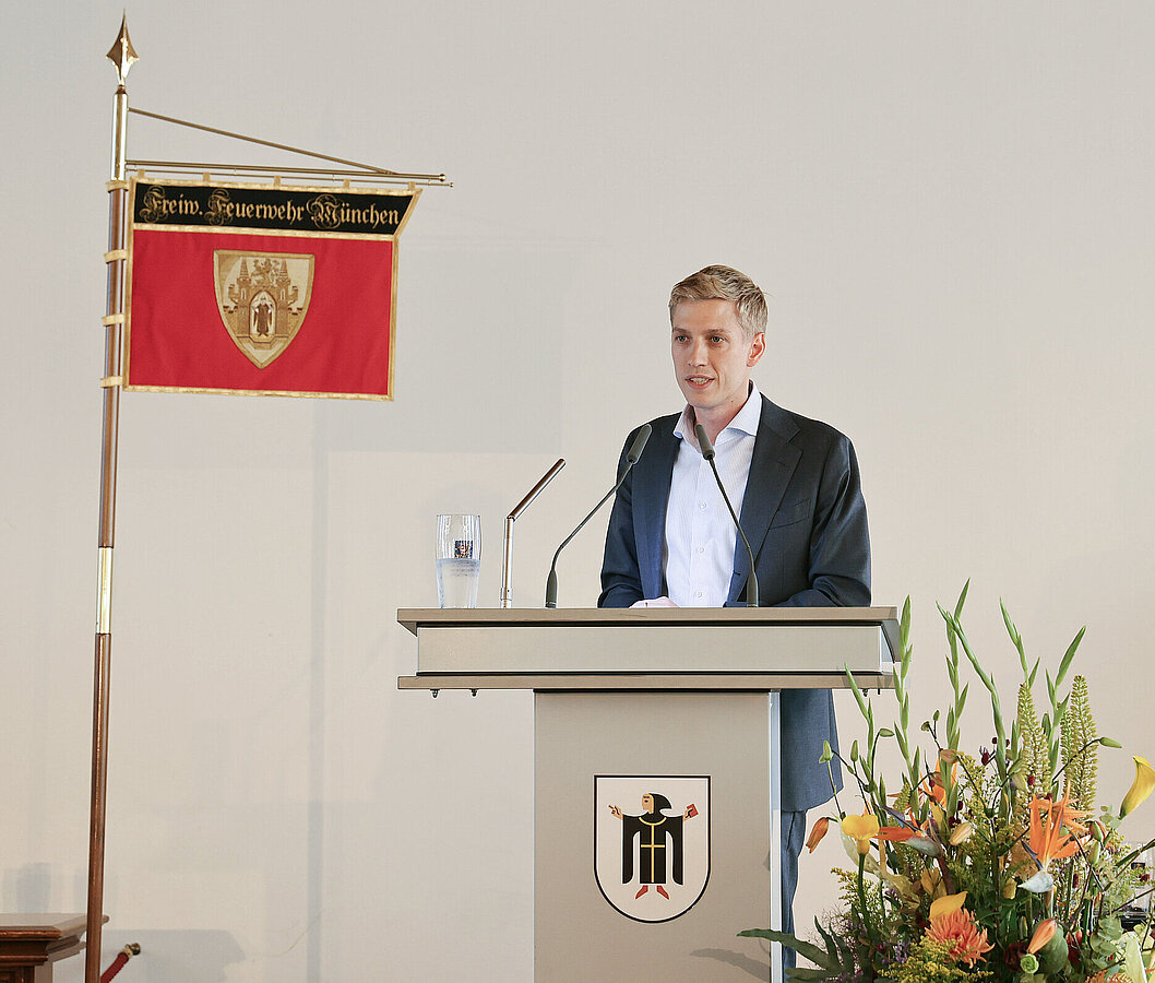 Dominik Krause, der 2. Bürgermeister der Stadt München, begrüßte am 18. Juli die zahlreich erschienenen Gäste im Alten Rathaussaal der Stadt München. Nach den einleitenden Worten, die unter anderem die besondere Bedeutung der Feuerwehr in der Stadtgesellschaft unterstrich, folgte die feierliche Verleihung der Ehrungen.