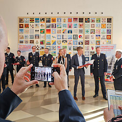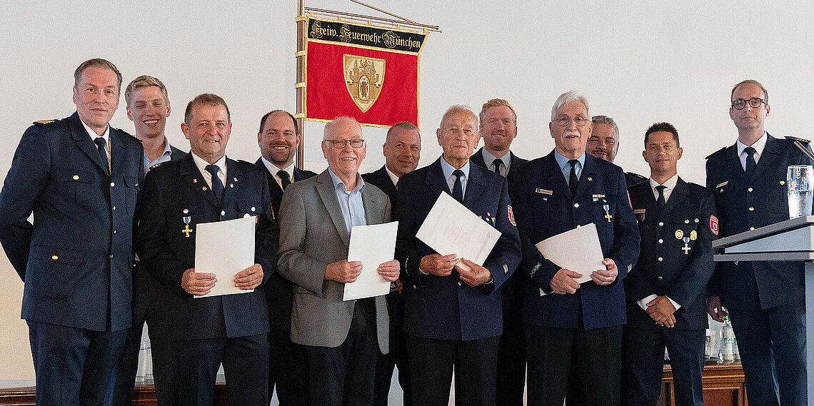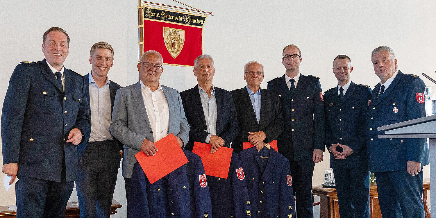 Oberbranddirektor Schäuble würdigte in seiner Laudatio zunächst die Arbeit von Rupert Saller, Albert Ederer und Alfred Kemmer. Alle drei waren lange Jahre mit der Leitung der Freiwilligen Feuerwehr München betraut. Alfred Kemmer war als Kommandant von 1996 bis 2002 im Einsatz, das Führungsduo Rupert Saller und Albert Ederer lenkte die Geschicke der Wehr von 2002 bis 2020.