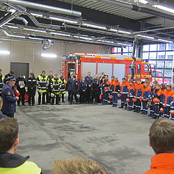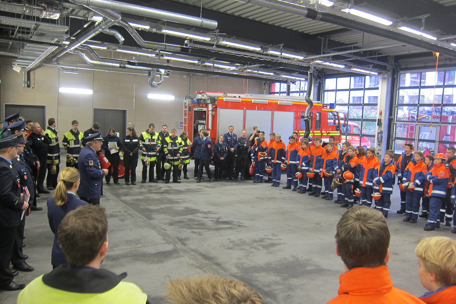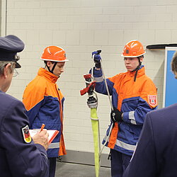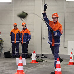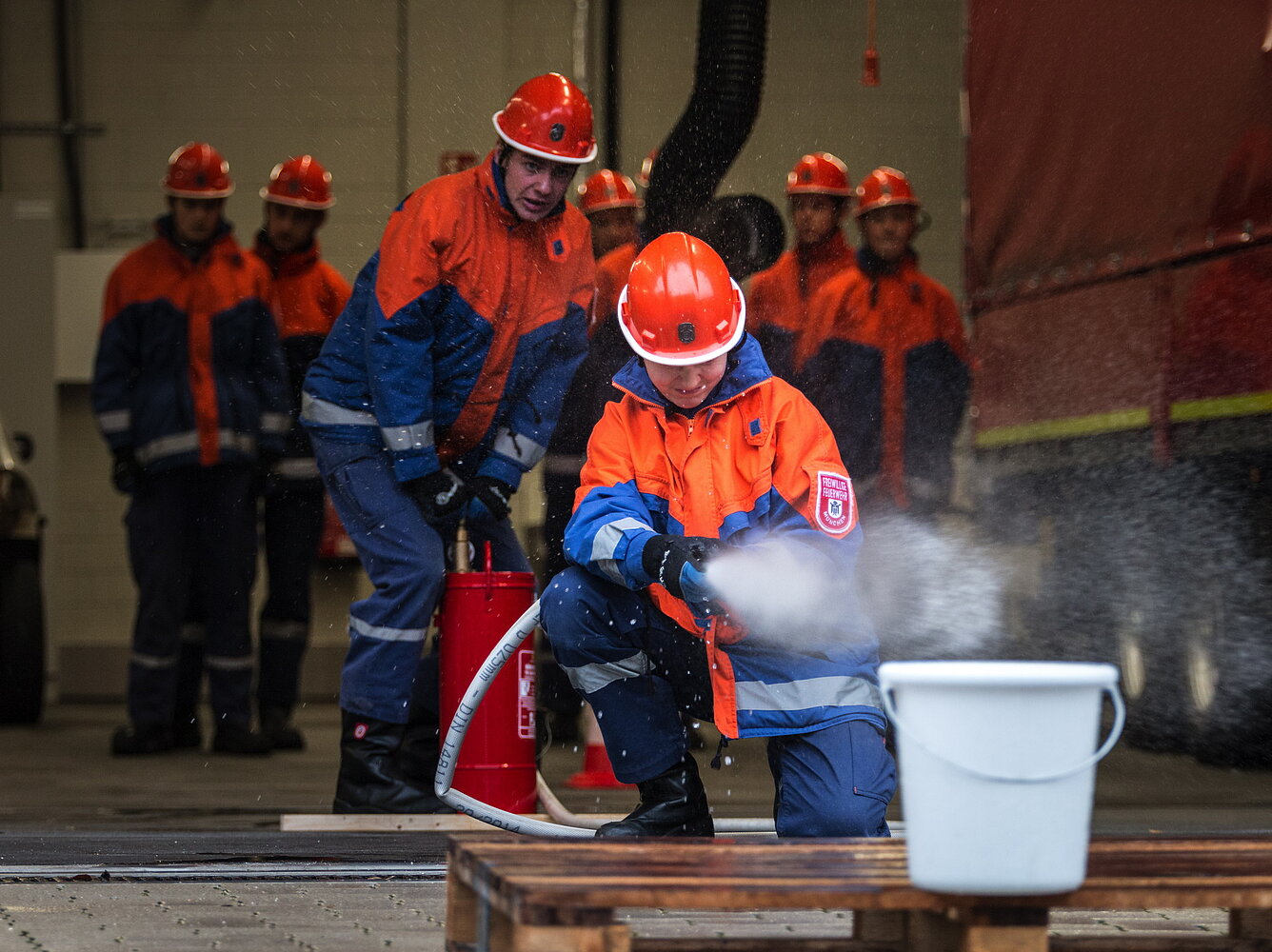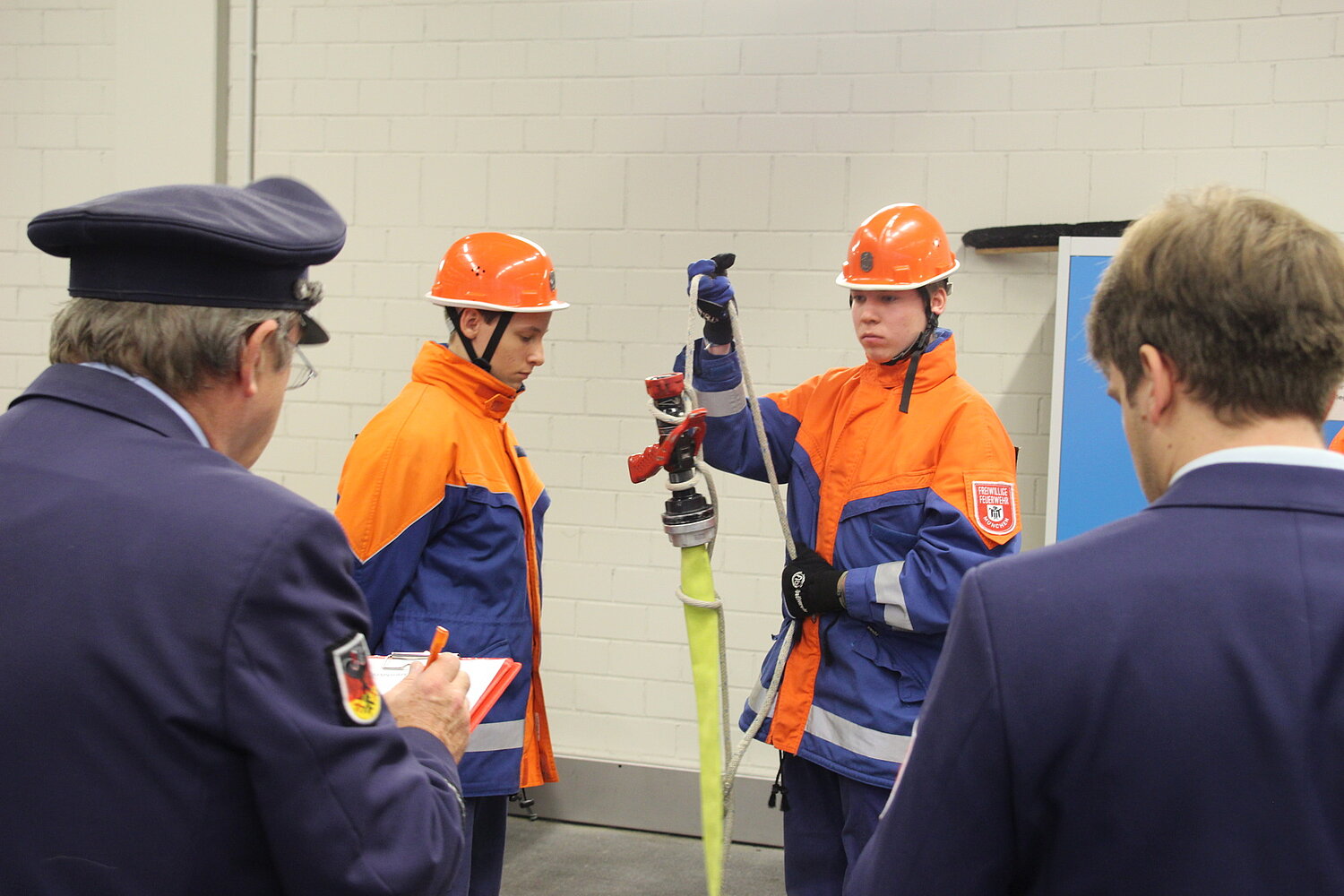 Bereits am frühen Samstagmorgen trafen die Teilnehmer, Ausbilder und Prüfer im neuen Gerätehaus der Abteilung Stadtmitte (Feuerwache 4) in Schwabing ein. Ein theoretischer Test und eine praktische Prüfung des Wissenstests gab es zum "Warmmachen". Im Anschluss wurde es noch anspruchvoller. An neun Stationen mussten die Jugendlichen all ihr Können abrufen. Aufgrund des schlechten Wetters wurden acht Stationen der Bayerischen Jugendleistungsprüfung in den Fahrzeughallen aufgebaut.