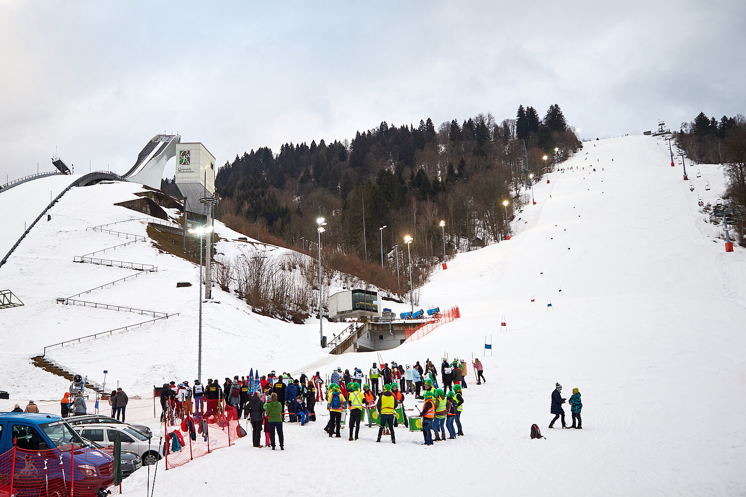 Erneut messen sich skibegeisterte Feuerwehrfrauen und Feuerwehrmänner auf der Riesenslalomstrecke am Gudiberg in Garmisch-Partenkirchen.