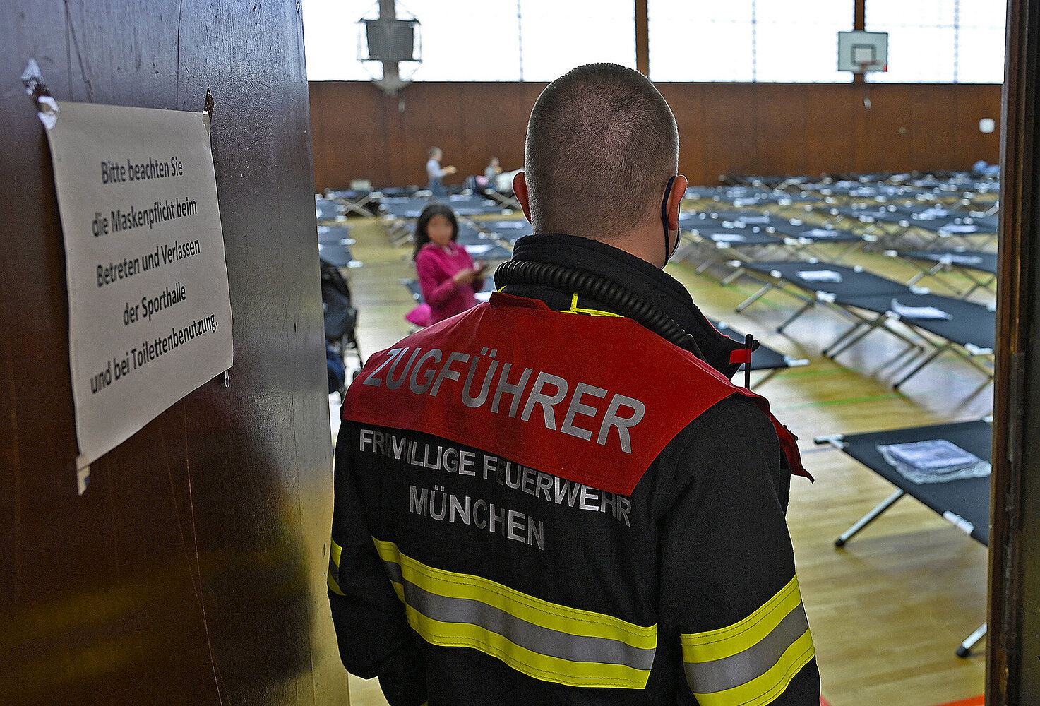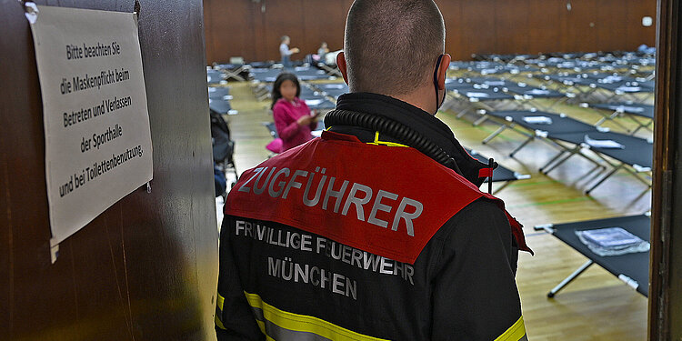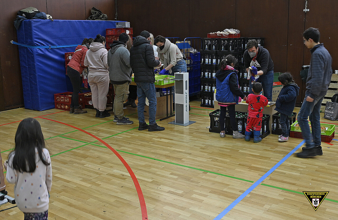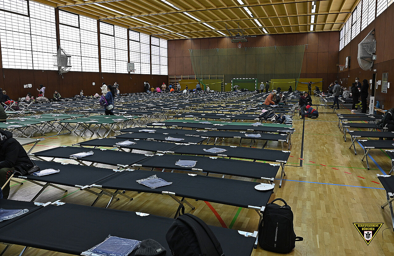 Anfang März stieg die Anzahl der in München angekommenen Geflüchteten aufgrund des Ukraine-Krieges stark an. Die FF München sorgte gemeinsam mit vielen anderen Helfern dafür, dass Geflüchtete in München in Notunterkünften eine erste Bleibe hatten.