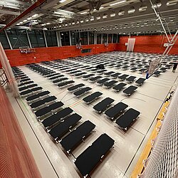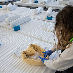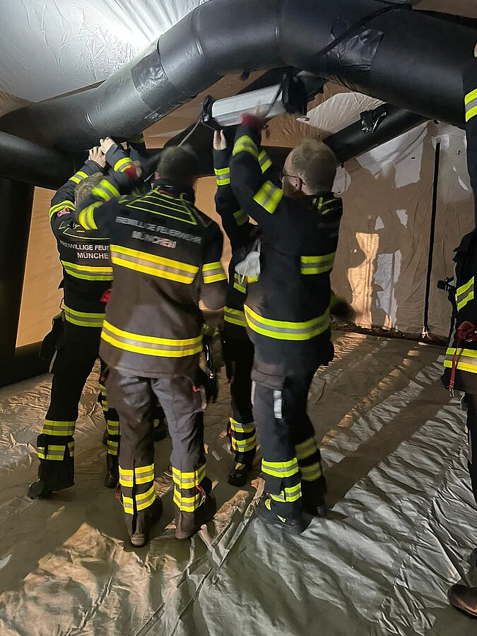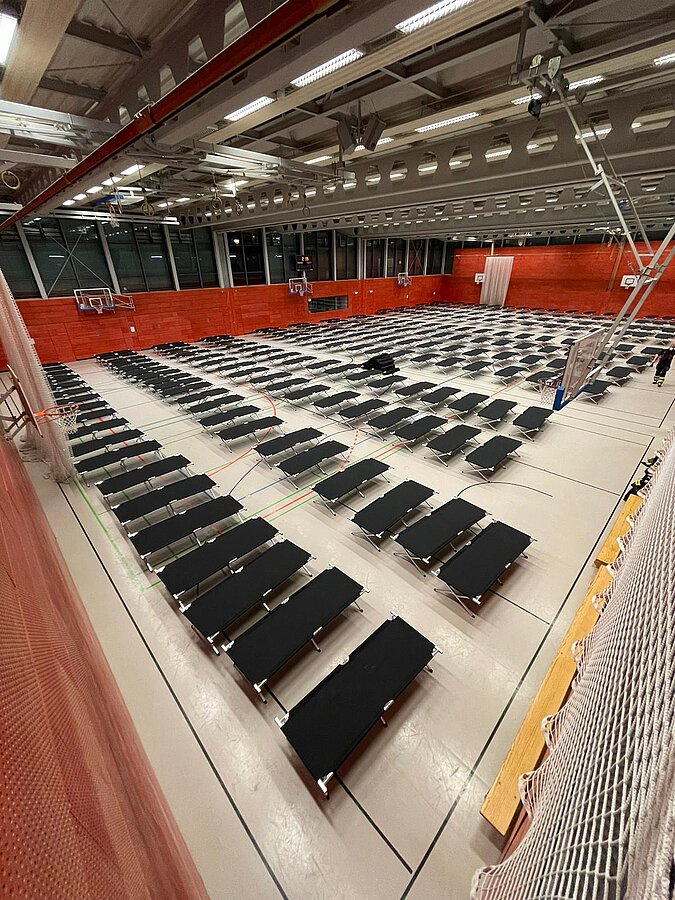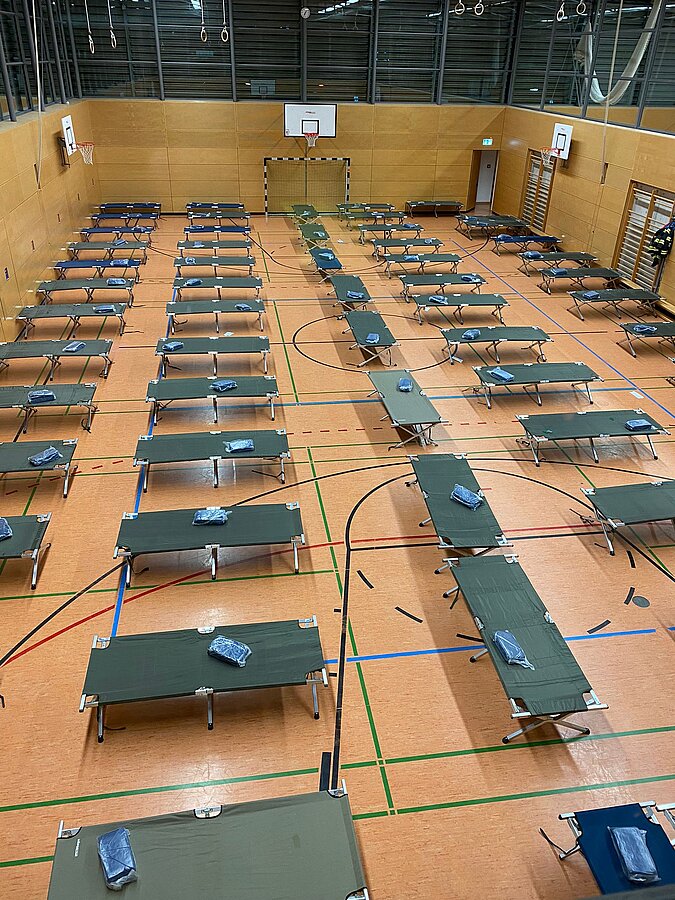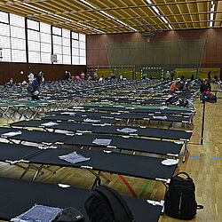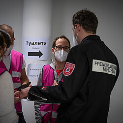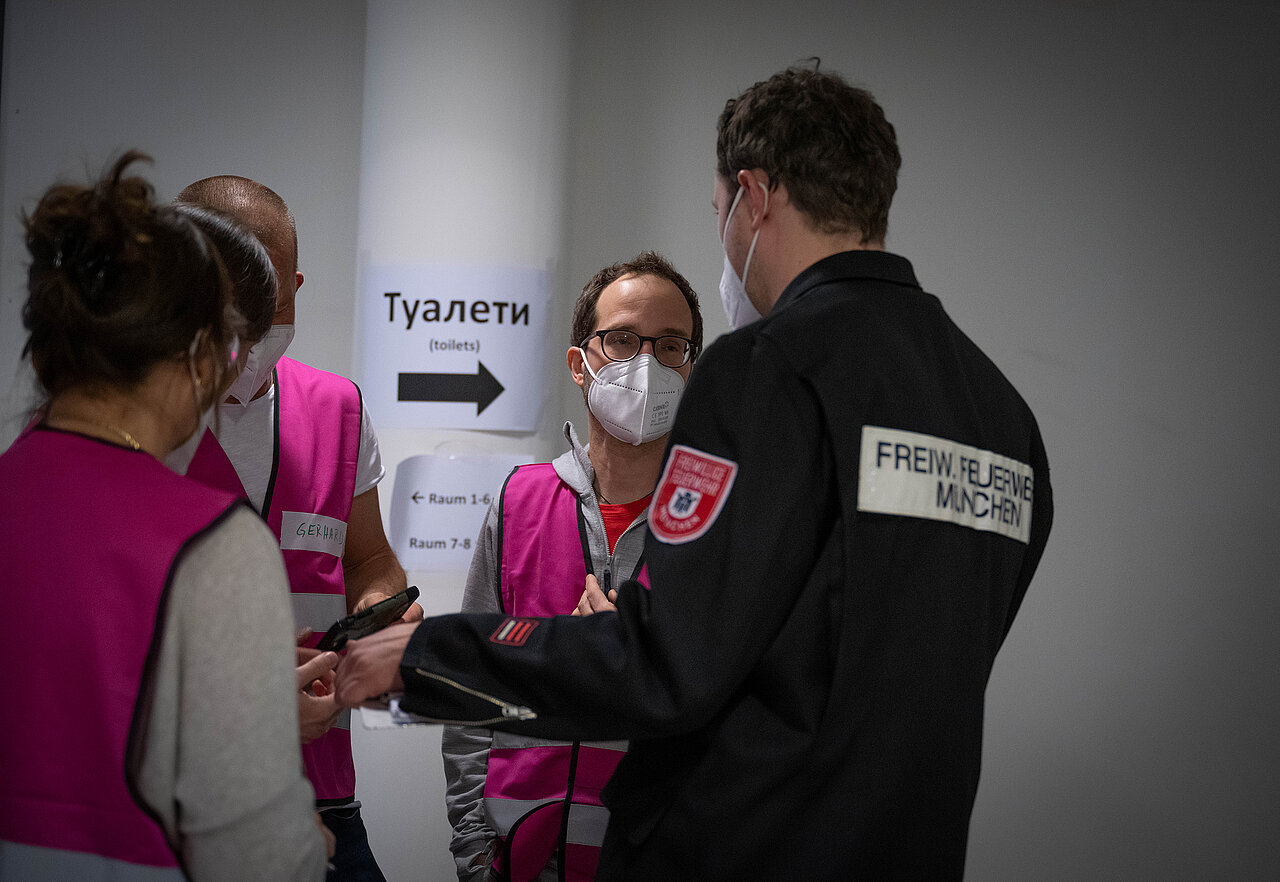 Anfang März stieg die Anzahl der in München angekommenen Geflüchteten aufgrund des Ukraine-Krieges stark an. Die FF München sorgte gemeinsam mit vielen anderen Helfern dafür, dass Geflüchtete in München in Notunterkünften eine erste Bleibe hatten.