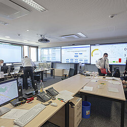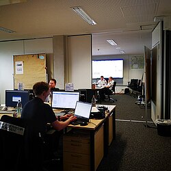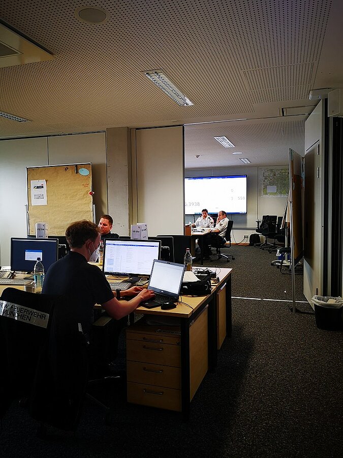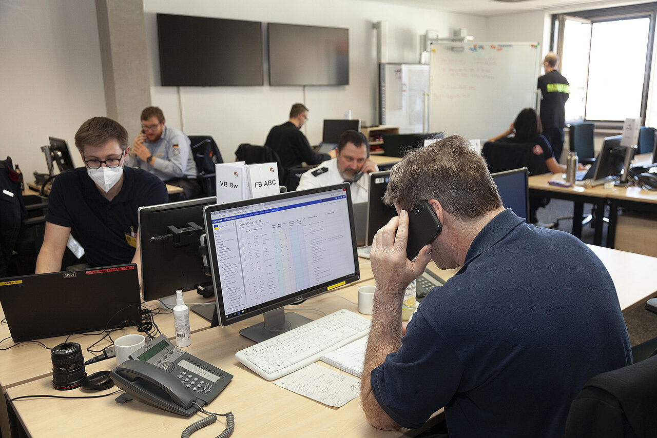 Hier waren kontinuierlich mehrere Funk- und Telefonplätze besetzt, um immer erreichbar zu sein. Darüber hinaus wurden unter anderem Kommunikationsskizzen erstellt und Lagemeldungen protokolliert sowie das Einsatztagebuch geführt. Aufgrund der Schichtarbeit war auch eine laufende Personalplanung nötig.