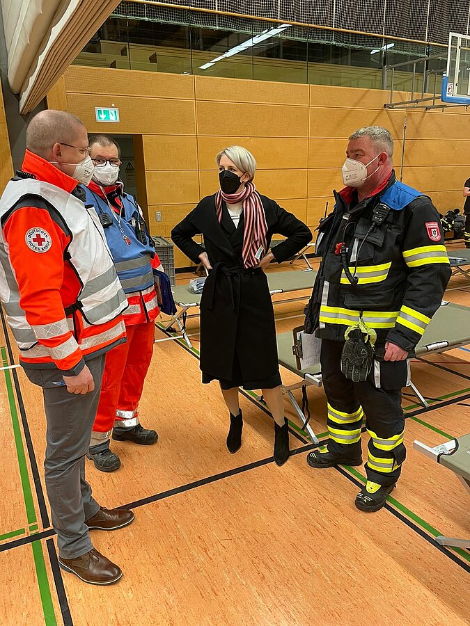 Kaum war der Einsatzauftrag zum mehrtägigen Betrieb des Hilfsgüter-Umschlagplatzes am 7. März abgearbeitet – wir berichteten, wurden wir direkt im Anschluss zu einem weiteren nicht alltäglichen Einsatz gerufen. Die Aufgaben reichten hier von der Begleitung und Betreuung bei Ankunft von Sonderzügen über den Aufbau von Akutbetreuungsstellen bis hin zum Betrieb von Meldeköpfen an den Notunterkünften und Abwickeln von Kommunikations- und Dokumentationsaufgaben in der Gefahrenabwehrleitung (GAL), wo wir Hand in Hand mit den Kolleginnen und Kollegen der Berufsfeuerwehr München arbeiteten.