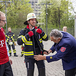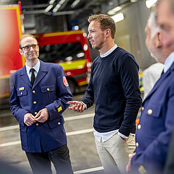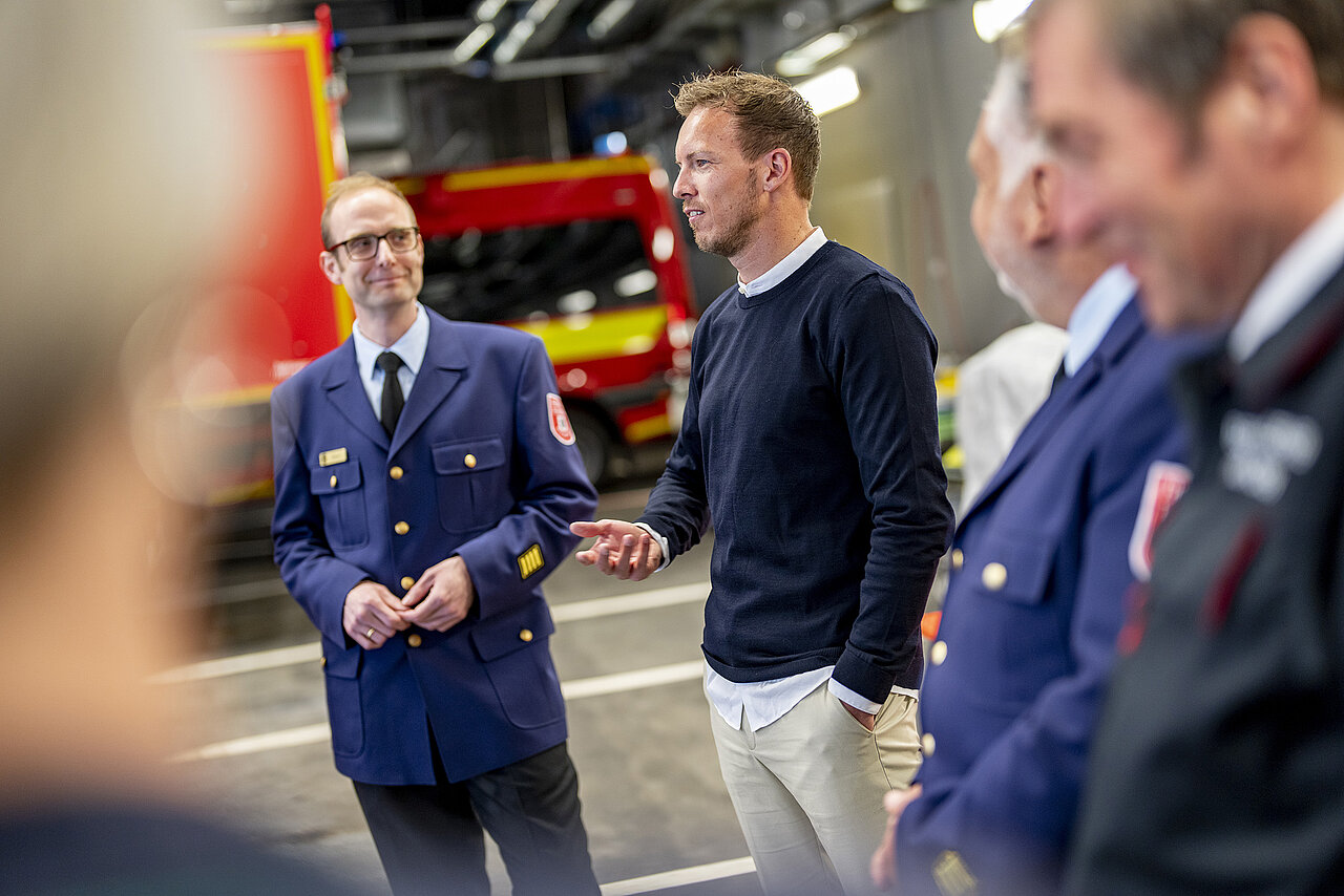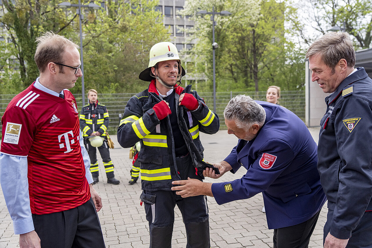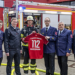 Beim gestrigen Besuch des FC Bayern Trainers Julian Nagelsmann bei der Freiwilligen Feuerwehr München wurde klar: die beiden Vereine verbindet mehr als nur die Farbe Rot – gemeinsame Werte wie Disziplin, Toleranz, Leistungsbereitschaft und gegenseitiges Einstehen füreinander.