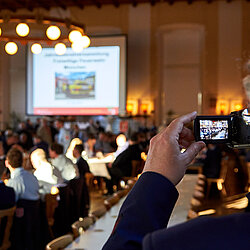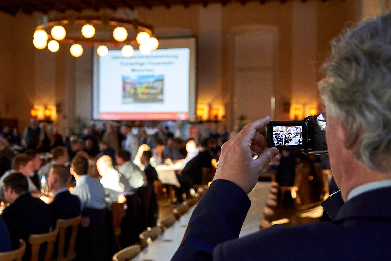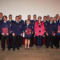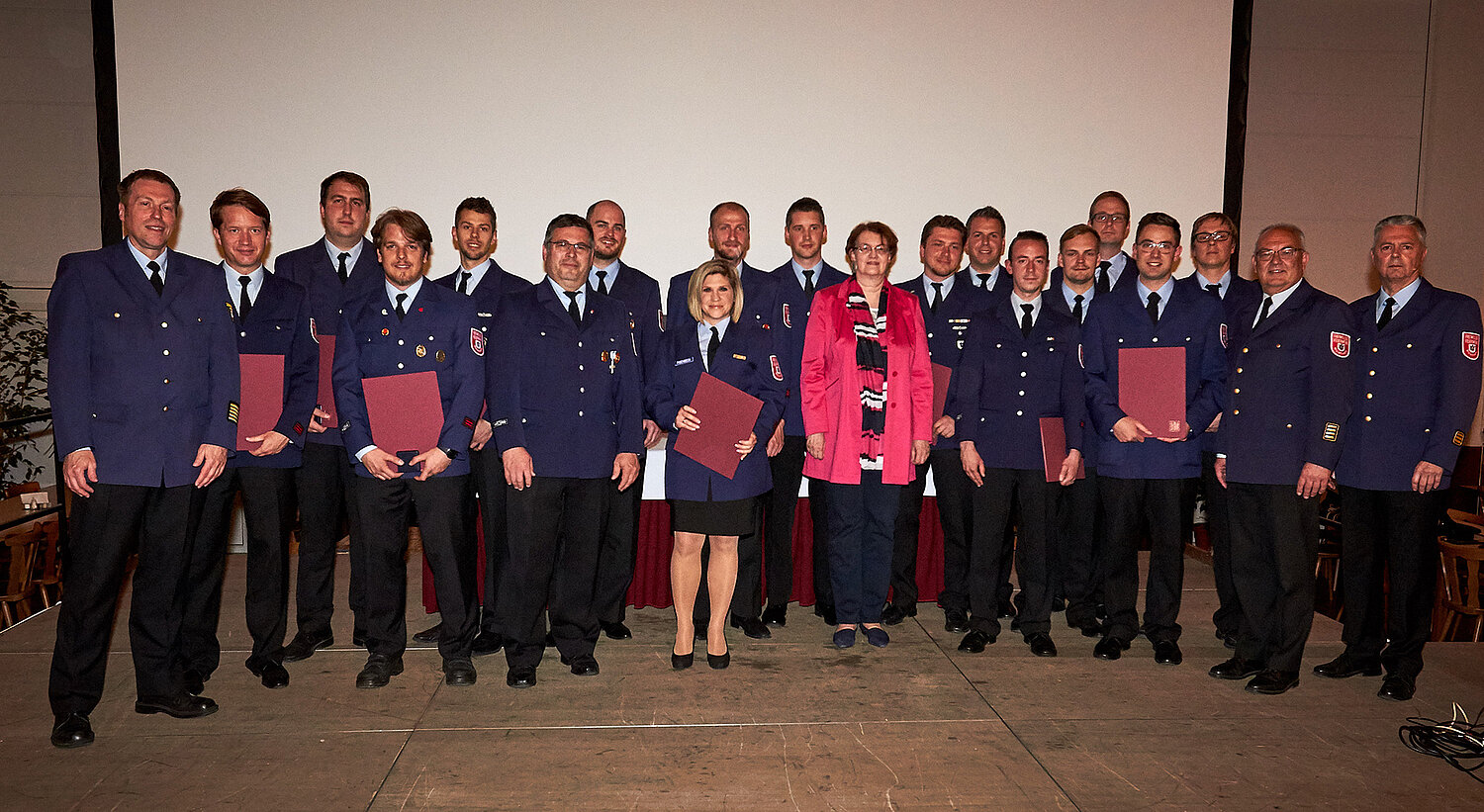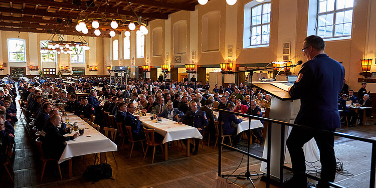 Etwa 500 Feuerwehrfrauen und -männer der Freiwilligen Feuerwehr München sind zur diesjährigen Jahresdienstversammlung im Casino der Krauss-Maffei AG erschienen.
