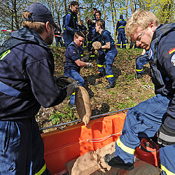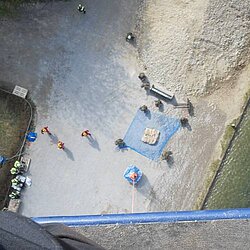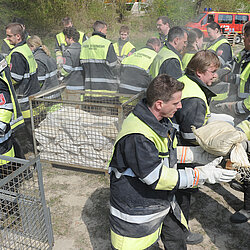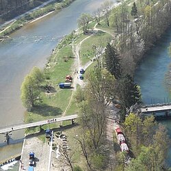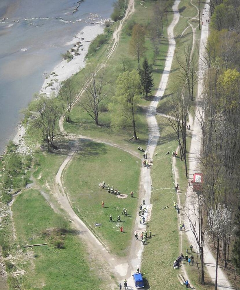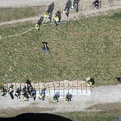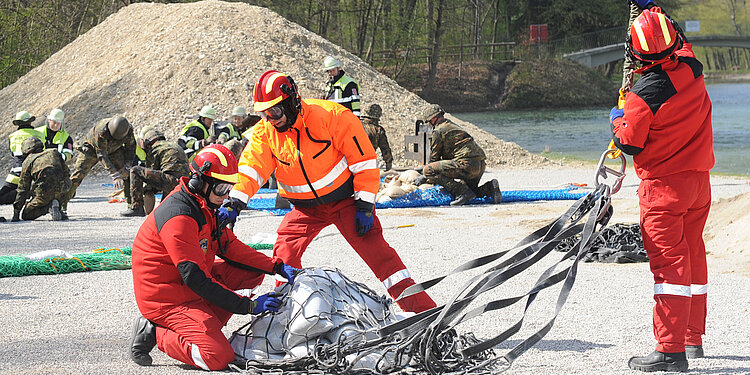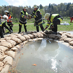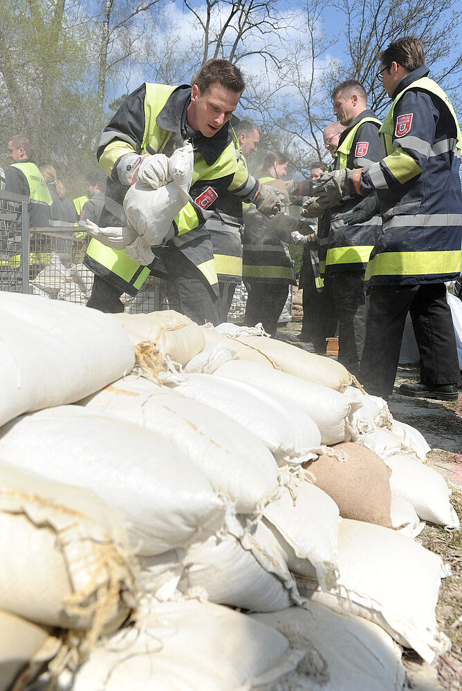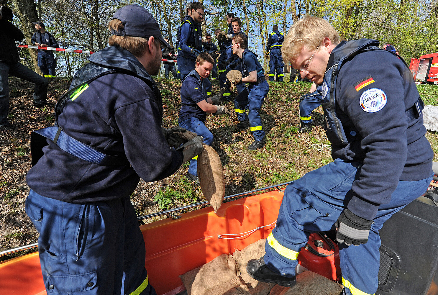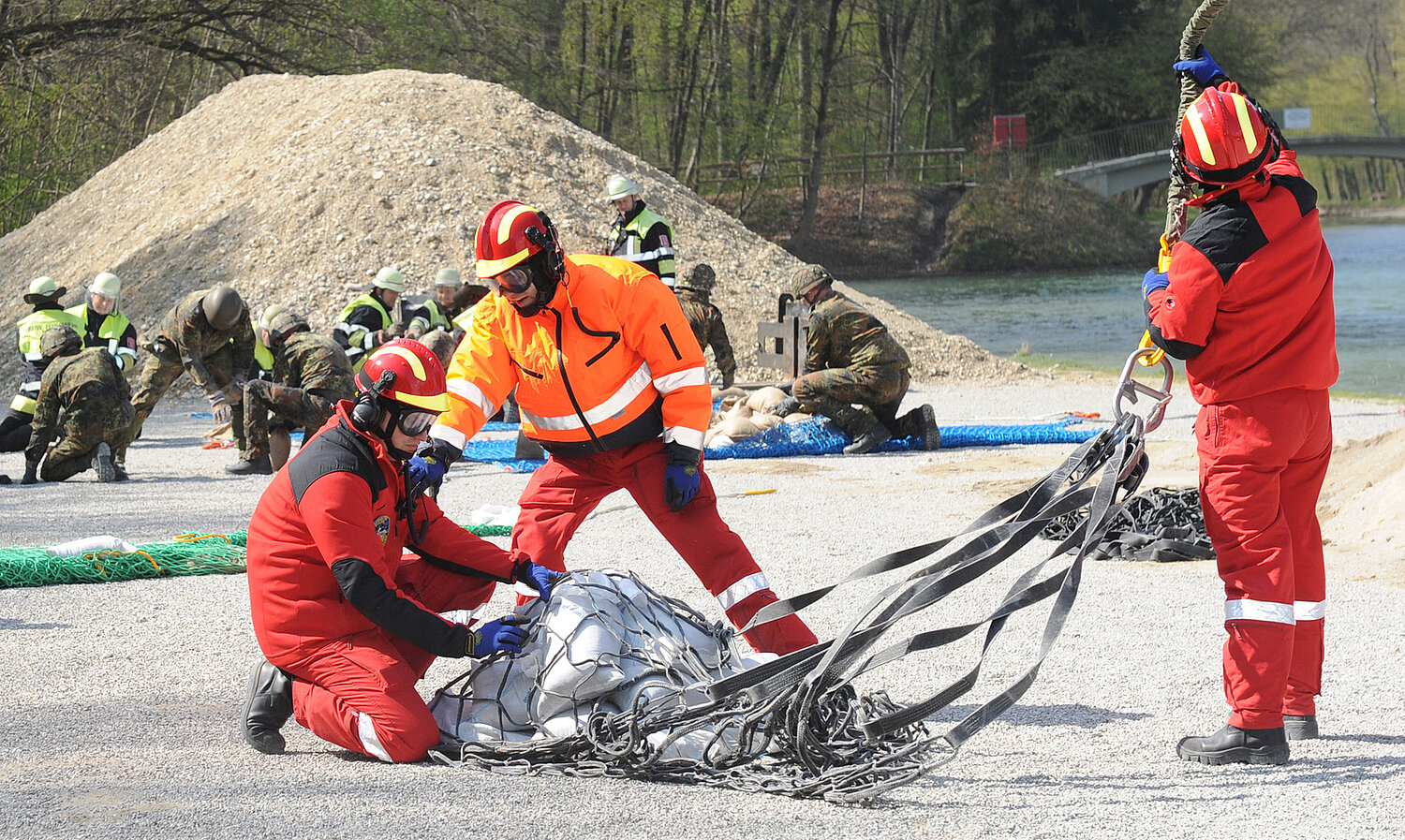 Am 16. April 2011 kurz nach 7 Uhr war es vorbei mit der Ruhe an der Floßlände im Münchner Süden. Mit dem Abladen der Sandfüllmaschinen sowie der Einrichtung einer sogenannten Örtlichen Einsatzleitung im Katastropheneinsatzleitfahrzeug (KELF) der Feuerwehr München, wurden letzte Übungsvorbereitungen getroffen.