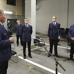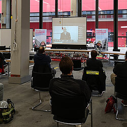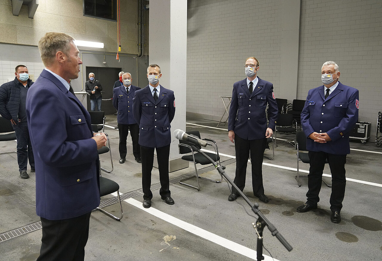 Unter Berücksichtigung aller Corona-Auflagen und des strengen Hygienekonzeptes wurde die Wahl unter den besonderen Bedingungen durchgeführt. Die 605 anwesenden Wahlberechtigten wurden per Videokonferenz-Schaltungen in 22 Feuerwehrhäuser vom Oberbranddirektor Wolfgang Schäuble begrüßt und vom Wahlleiter Brandrat Matthias Keller über das Wahlprozedere informiert.