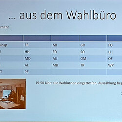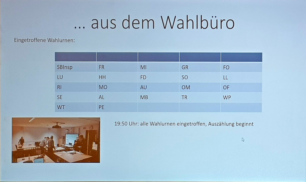 Per Videoübertragung wurden dann um 21 Uhr die Ergebnisse der Wahlen mitgeteilt: