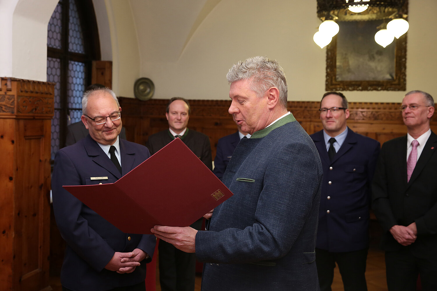 Mit dieser besonderen Auszeichnung wurde Rupert Saller für seine langjährigen Verdienste in der Freiwilligen Feuerwehr München geehrt. Saller ist seit fast 40 Jahren Mitglied der Freiwilligen Feuerwehr München und seit dem Jahr 2002 deren Kommandant.