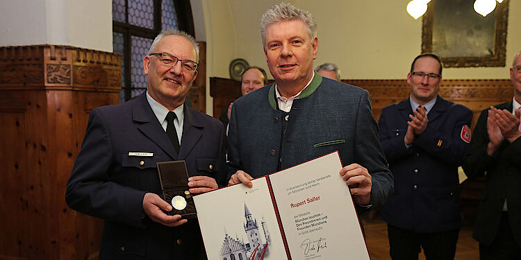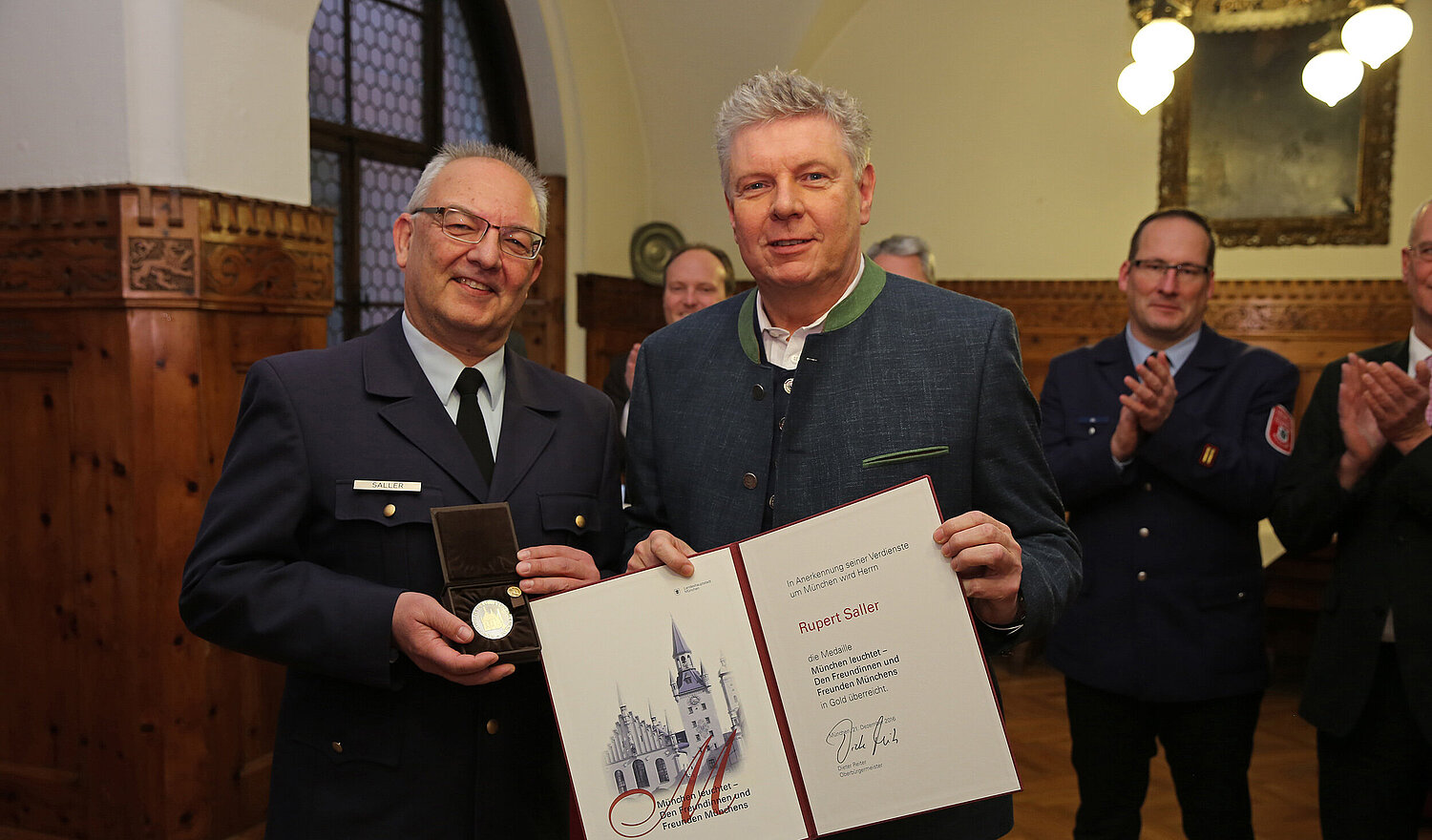 Für sein jahrzehntelanges Engagement bei der Freiwilligen Feuerwehr hatte die Stadt München Rupert Saller bereits mit den Medaillen „München leuchtet – Den Freundinnen und Freunden Münchens“ in Bronze und in Silber ausgezeichnet.