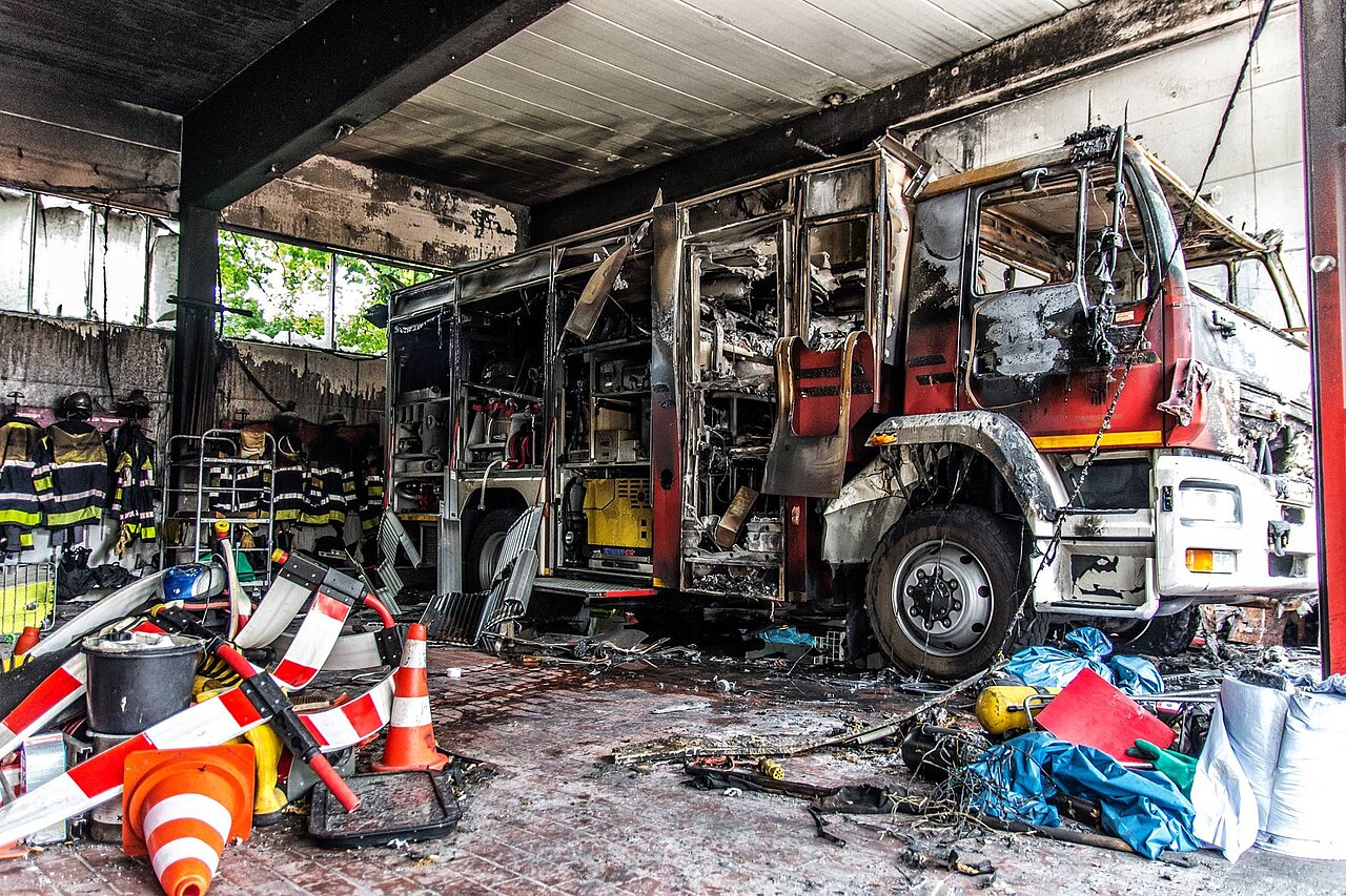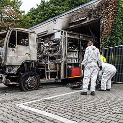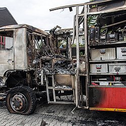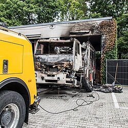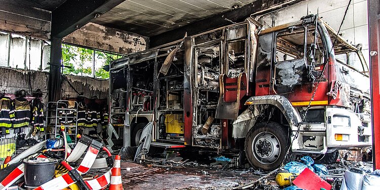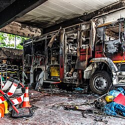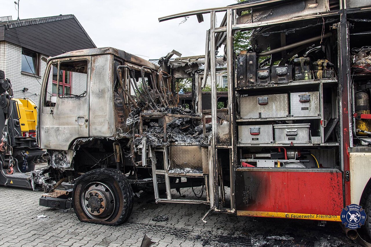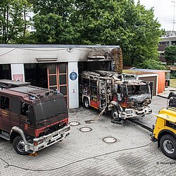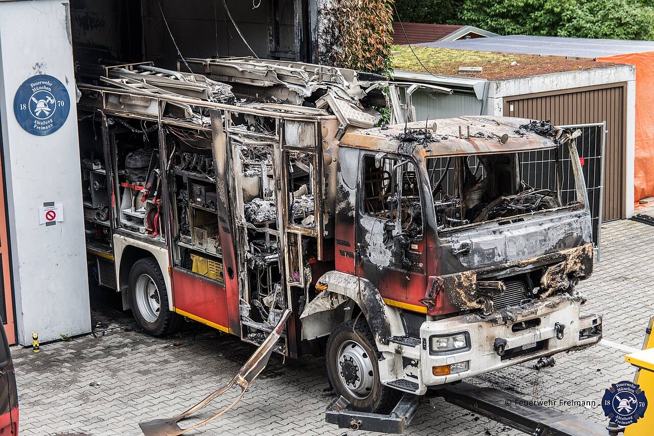 Im Notbetrieb bereits wieder einsatzbereit, wurden in Freimann die ausgebrannten Fahrzeuge abgeschleppt und die einsturzgefährdete Fahrzeughalle abgestützt.