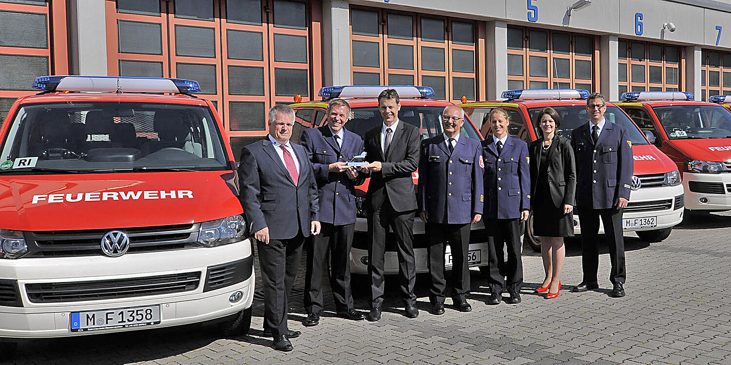 Am 10. Juli übergaben Verantwortliche des VW/MAN-Konzerns die Fahrzeuge auf der Feuerwache 9 in München-Neuperlach an den Dienststellenleiter, OBD Wolfgang Schäuble, den Kommandanten der Freiwilligen Feuerwehr, SBR Rupert Saller sowie an Mitarbeiter/innen der Unterabteilung „Einsatzmittelplanung – VO-III“.
