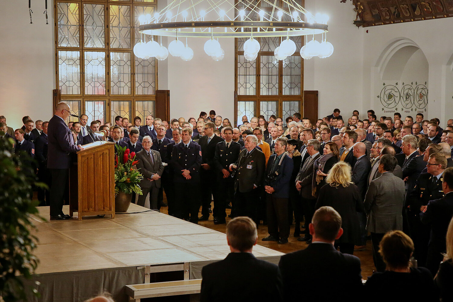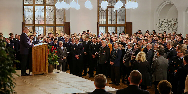 Am Donnerstagabend konnte der Stadtfeuerwehrverband bei seinem Neujahrsempfang rund 450 Gäste aus Politik und Wirtschaft sowie von Polizei und Hilfsorganisationen im Alten Rathaussaal begrüßen.