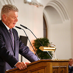 Diese Vorlage nahm sein Nachredner, Oberbürgermeister Dieter Reiter, natürlich umgehend auf: „Der größte Neujahrsempfang? Okay. Aber der Bunteste? Da stellt sich mir dann doch die Frage, wieviel Blau-Anteil im Saal ist.“
