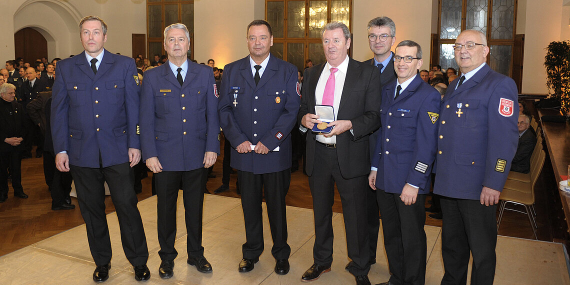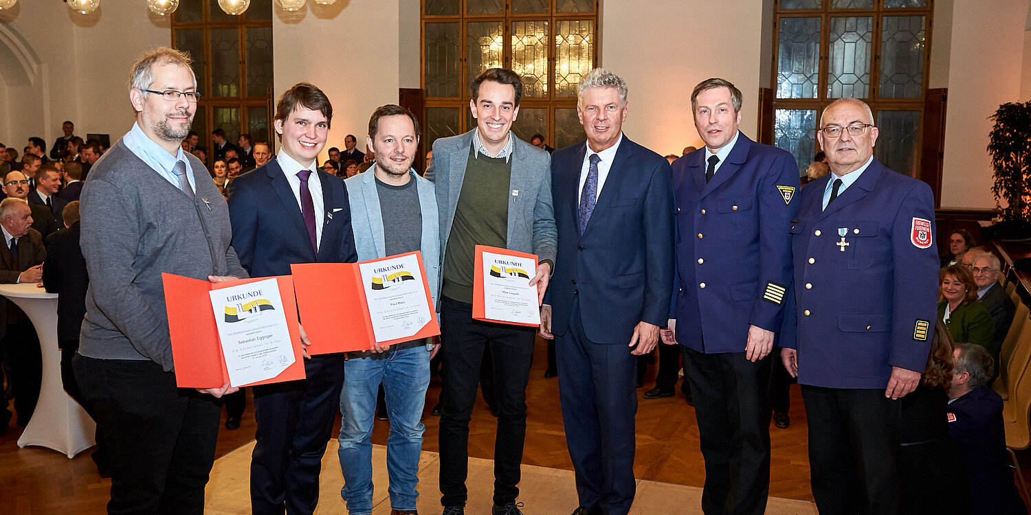 Unter großem Applaus wurden die drei Lebensretter von Oberbranddirektor Wolfgang Schäuble, Stadtbrandrat Rupert Saller und Oberbürgermeister Dieter Reiter mit der Silbernen Ehrennadel des Stadtfeuerwehrverbandes München ausgezeichnet.