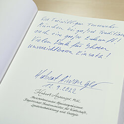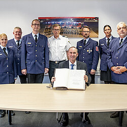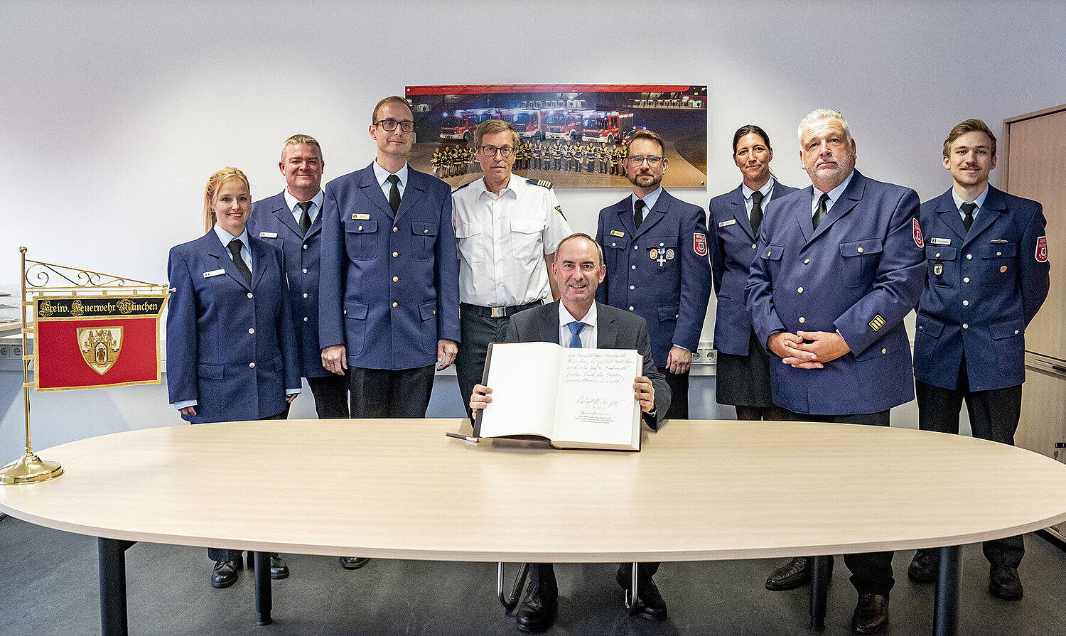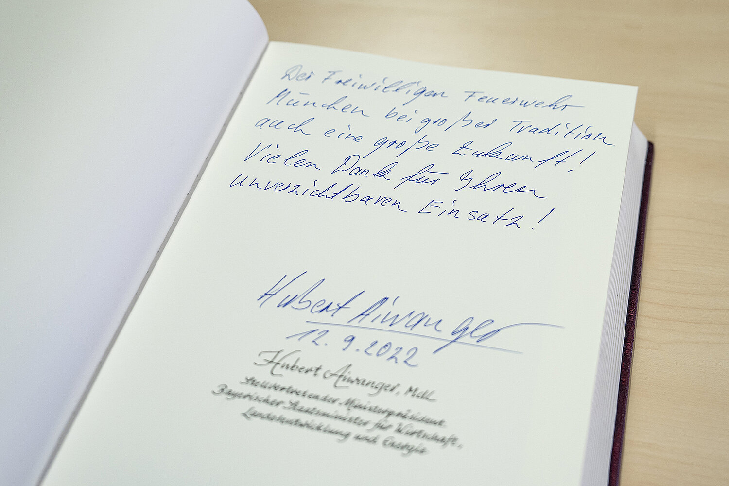 Neben Diskussionen zusammen mit Oberbranddirektor Wolfgang Schäuble zu aktuellen Themen, wie zum Beispiel der Gasmangellage, konnte sich Herr Aiwanger als Erster in das neue „Goldene Buch“ der Freiwilligen Feuerwehr München feierlich eintragen. Dieses wurde gerade erst anlässlich des 156. Gründungsjubiläums am 10. September 2022 gestaltet und durch die Kommandanten eingeweiht.