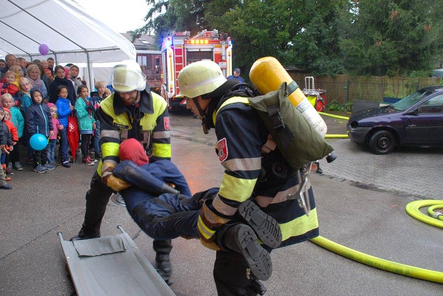 Unser Tag der offenen Tür am 17. September war trotz des komplett verregneten Tages ein voller Erfolg für unsere Floriansjünger, die alles akribisch vorbereitet hatten und bis zuletzt vergeblich auf ein paar Sonnenstrahlen gehofft hatten.