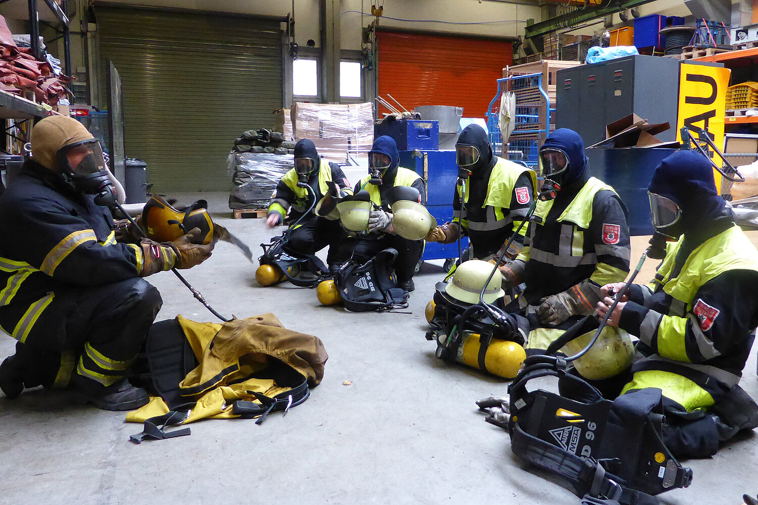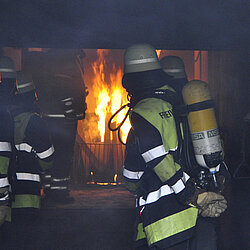 Zuerst gab es einen Unterricht mit einer Einweisung in die Übungslage, bevor sich alle „in Schale geworfen“ haben. Das heißt, Atemschutzgerät und Schutzausrüstung wurden angelegt und los ging es. Als Teil der Grundausbildung durchlaufen alle Mitglieder der FF München im Rahmen des Atemschutzlehrgangs diesen Ausbildungsabschnitt in einer gas- und holzbefeuerten Brandsimulationsanlage.