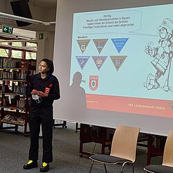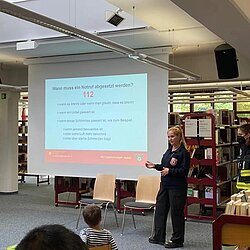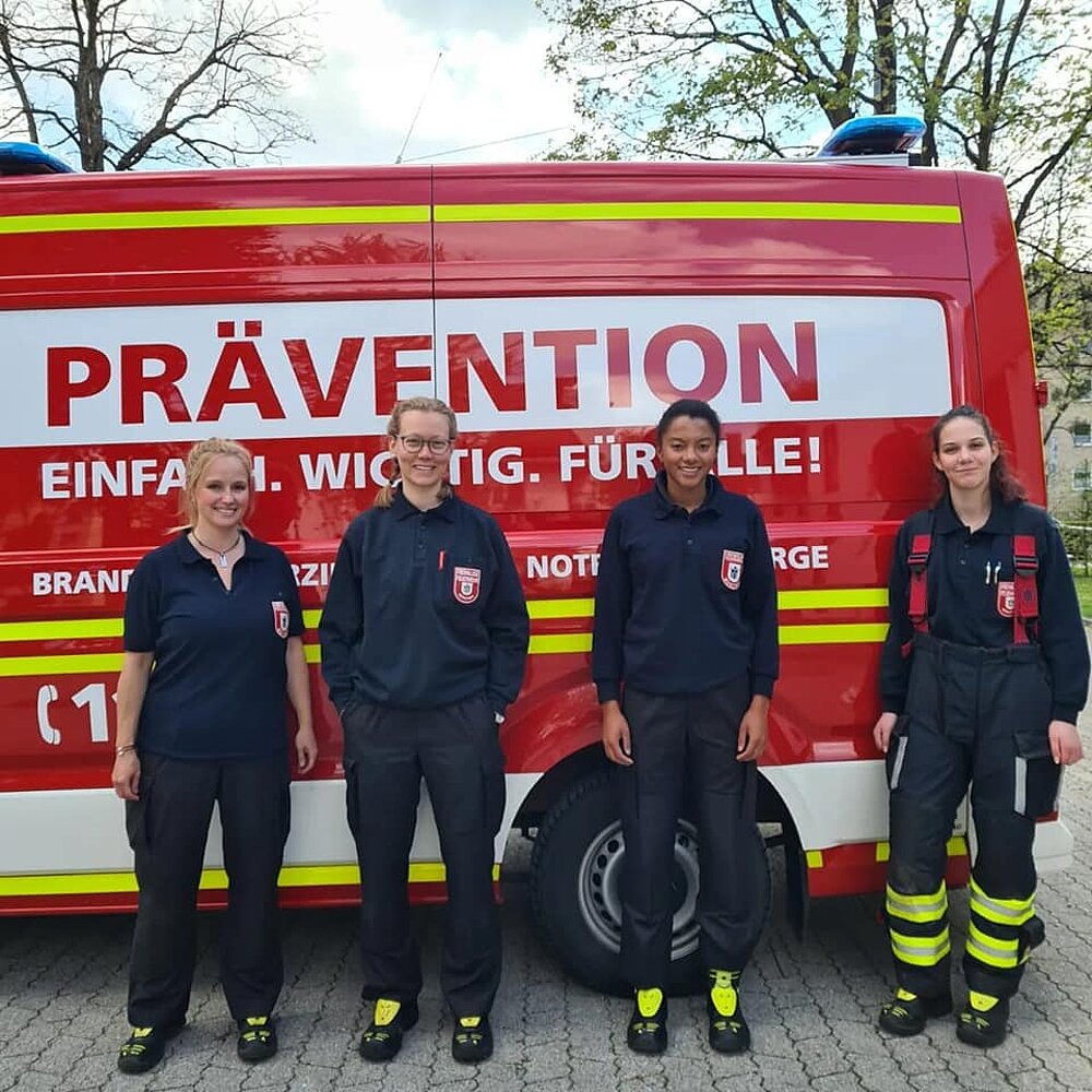 Im Rahmen der Girls Power Week waren drei Kameradinnen aus Moosach sowie eine Kameradin aus der Abteilung Stadtmitte in der Moosacher Stadtbibliothek.