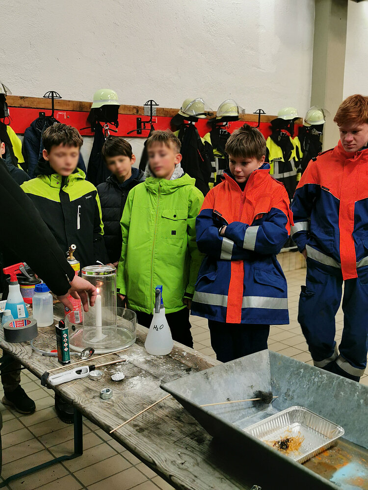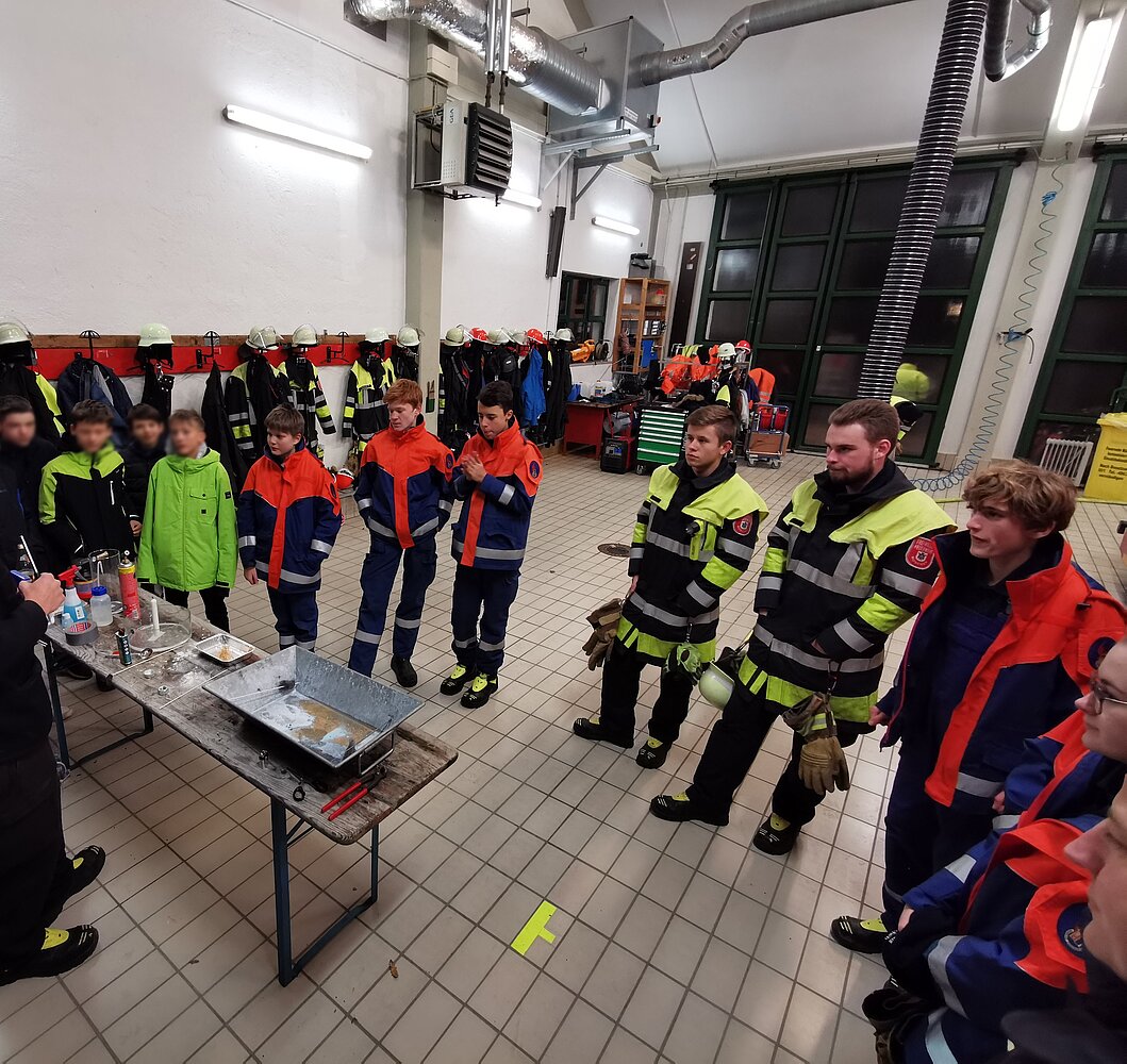 Kurz vor dem Jahresende stand bei der Jugendfeuerwehr das Thema „Brennen und Löschen“ auf dem Ausbildungsplan.