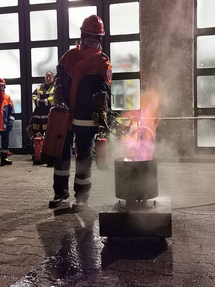Um später einmal einen Brand löschen zu können, gehört es zum Grundwissen eines jeden Feuerwehrangehörigen, die Abläufe der Verbrennung und des effektiven Löschens zu beherrschen. Die zugehörige Ausbildungseinheit übernahmen in diesem Jahr ein Teil der aktiven Mitglieder der Abteilung Riem, sowie das Präventionsteam der Freiwilligen Feuerwehr München.