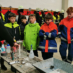 Dass auch Metalle brennen können, welchen Einfluss Sauerstoff auf die Verbrennung hat und wie sich das Mengenverhältnis von Brennstoff zu Temperatur auf die Entstehung eines Feuers auswirkt, wurde an der zweiten Station mithilfe zahlreicher Versuche und Vorführungen veranschaulicht.