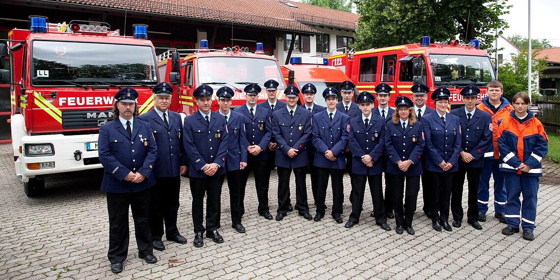 Das Gerätehaus der Abteilung Langwied-Lochhausen befindet sich als Einziges aller Standorte außerhalb des Autobahnringes der BAB 99.
