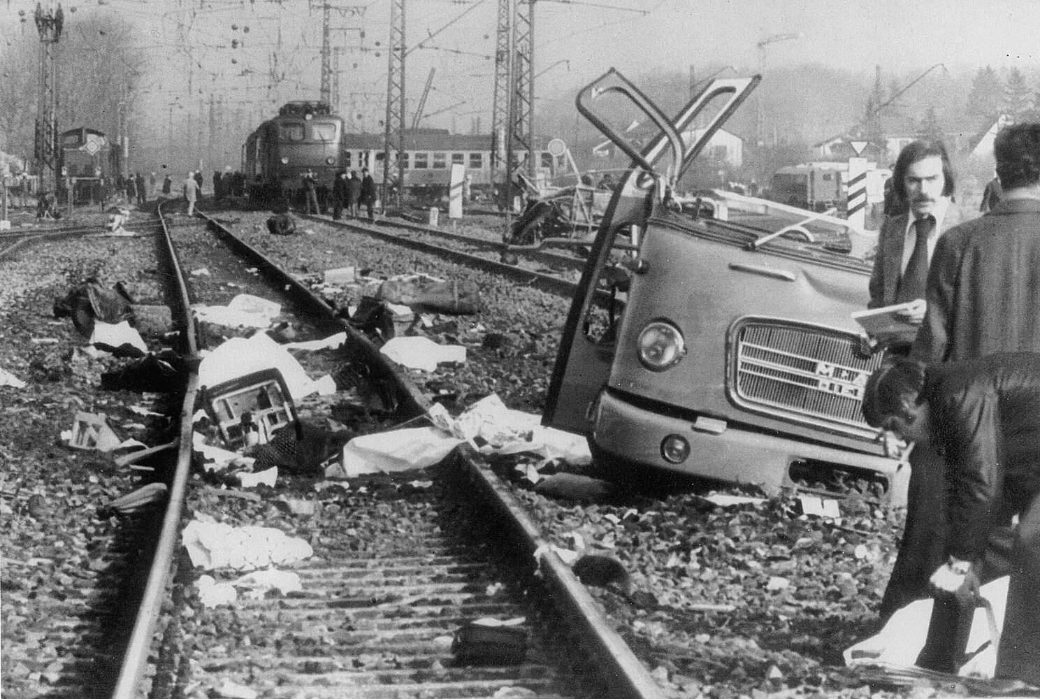 Am Bahnübergang Allach erfasst ein Nahverkehrszug einen Bus. Der Bus wird total zertrümmert. 14 der 17 Businsassen sterben. Drei Vorgesetzte werden später zur Bewährungsstrafen verurteilt, weil sie den psychisch labilen Schrankenwärter wider besseren Wissens arbeiten ließen. Er hatte die Schranke am Unglücksmorgen zu früh geöffnet.